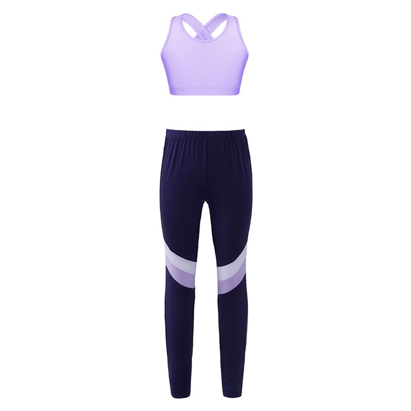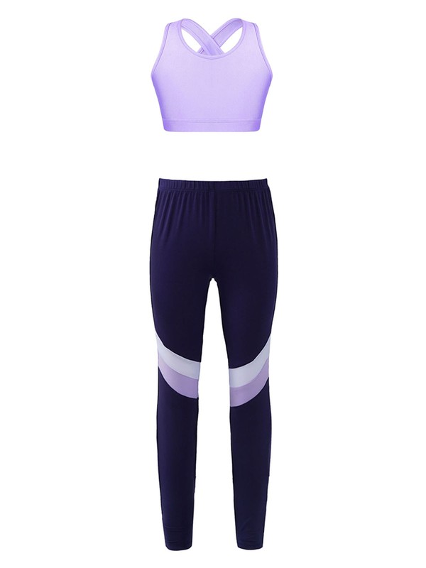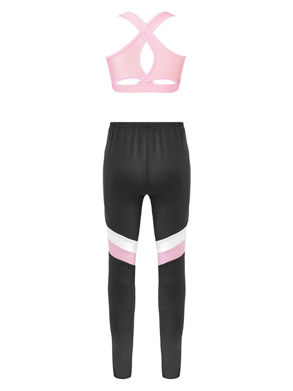 Girl’s sleeveless crop tank top, cross and cutout back, elastic hem to prevent riding up.