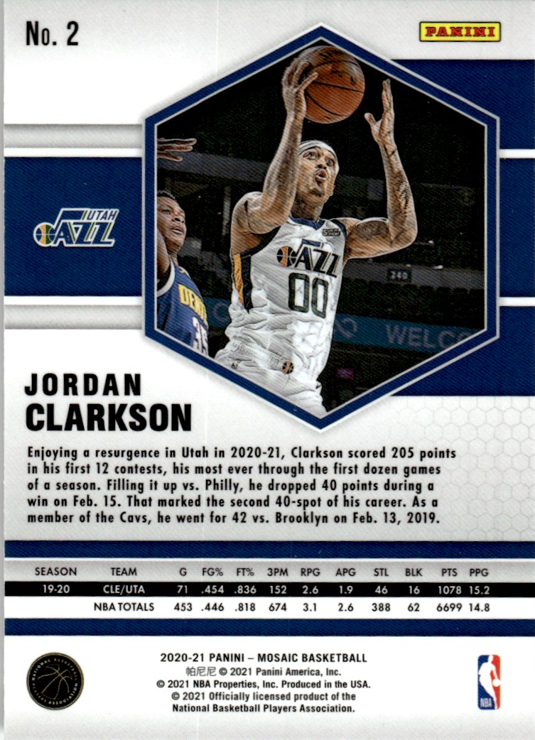 | 2020-21 Mosaic Basketball Card 2 Jordan Clarkson |