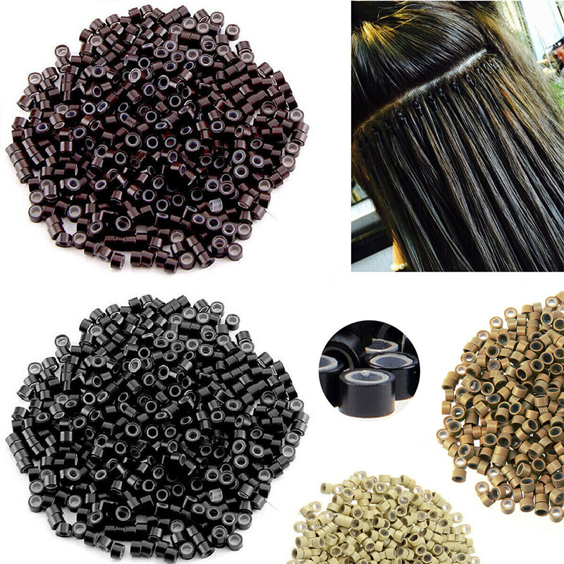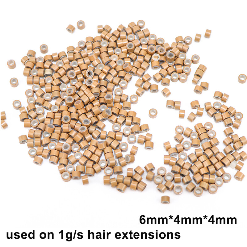 600pcs Micro Ring Silicone Lined for I Tip Hair Extensions Beige Beads Links USA