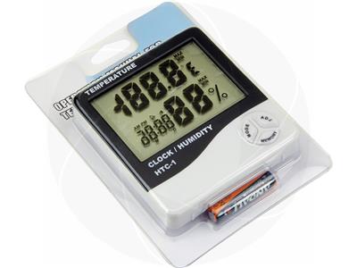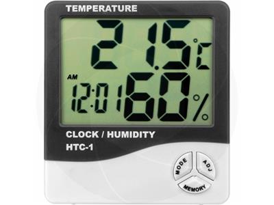 HTC-1 is a portable room thermometer, humidity meter with a digital clock and alarm. The screen displays temperature, humidity and clock simultaneously. This portable thermometer can be also used as a desk or an alarm clock. Clock can be switched from 12 to 24 hour mode, temperature settings can be switched from Celsius to Fahrenheit.
