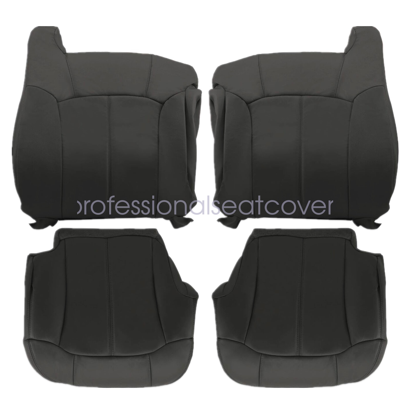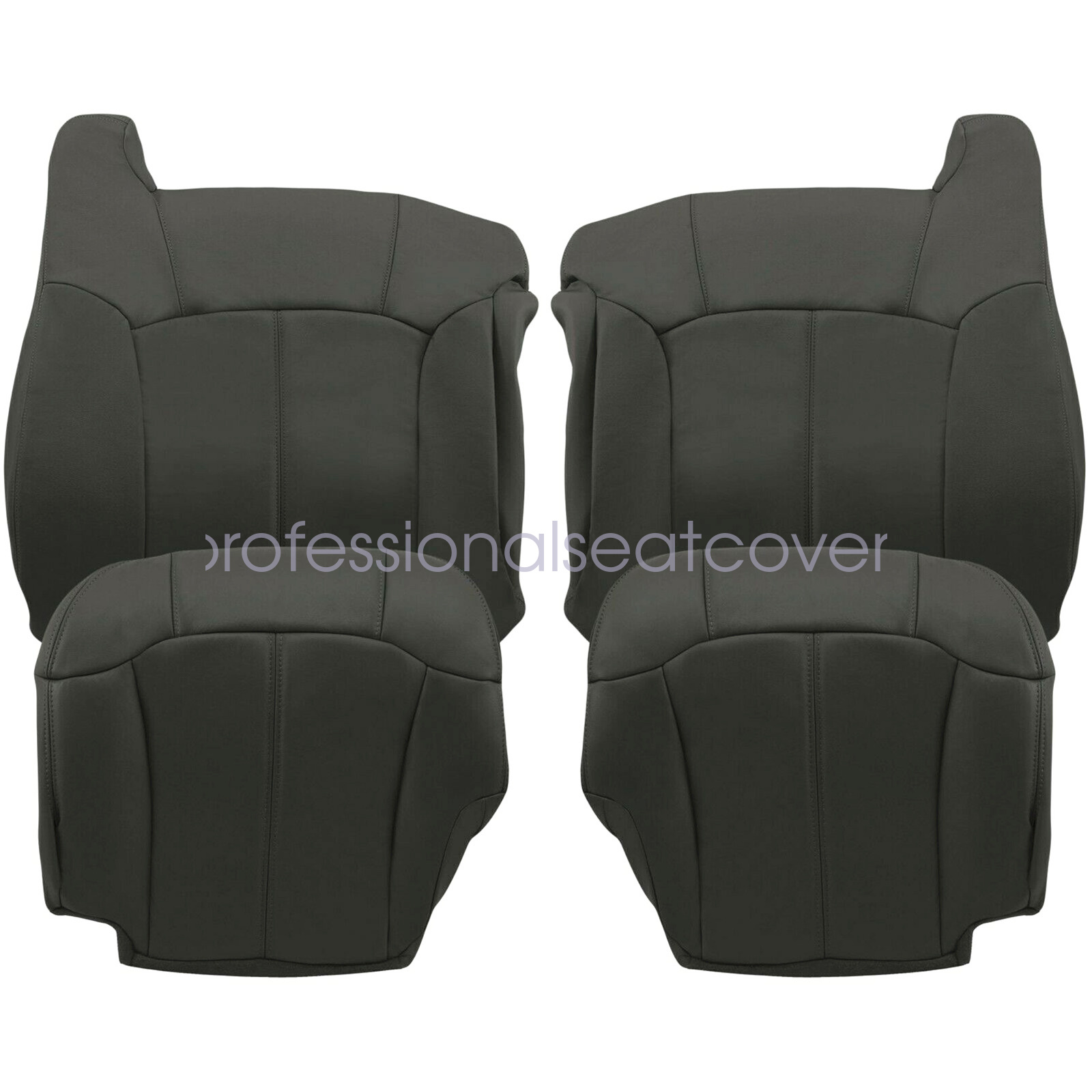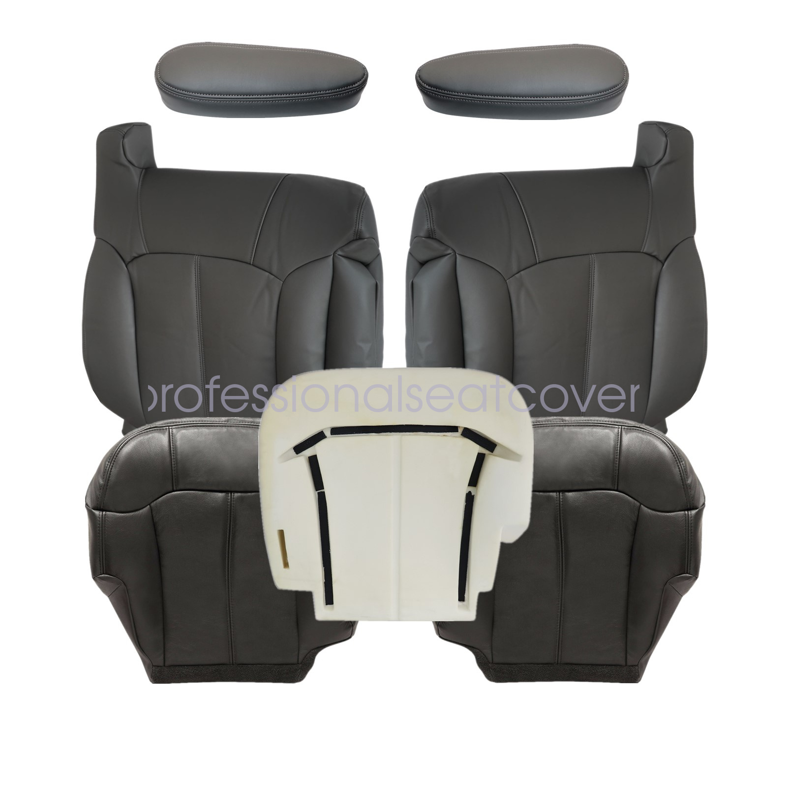 For 1999-2002 Chevy Silverado GMC Sierra 1500 2500 3500 HD Driver & Passenger Side Replacement Leather Seat Cover & Foam Cushion & Armrest Cover Dark Gray Color Code 122