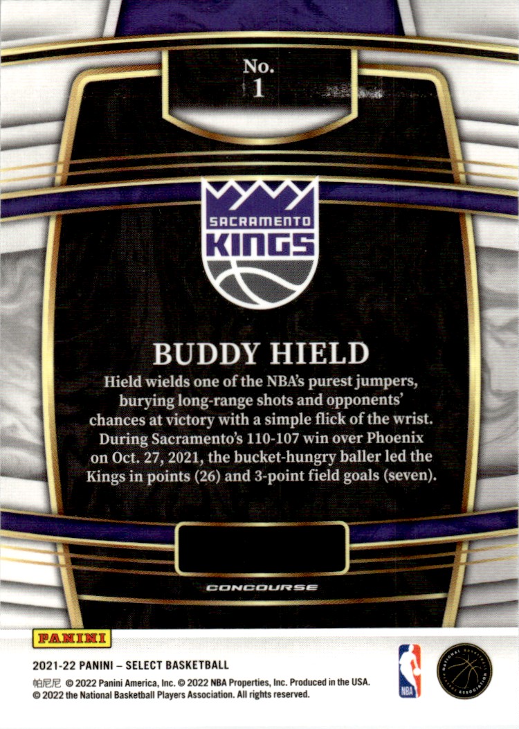 | 2021-22 Panini Select Basketball Card 1 Buddy Hield |