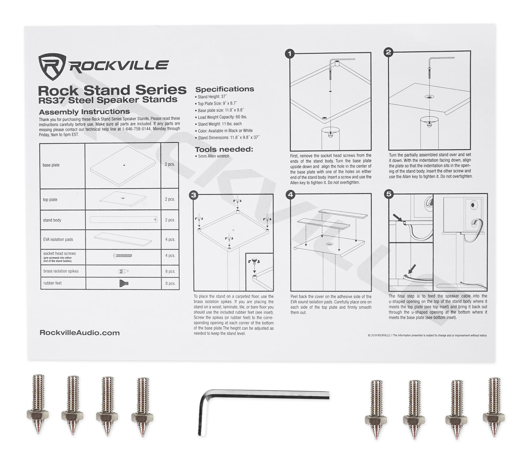 The Rockville RS37W V2 Rockstand Speaker stands are designed with appearance, performance, and quality in mind. These stands are perfect for Bookshelf speakers, surround sound speakers and studio monitors.