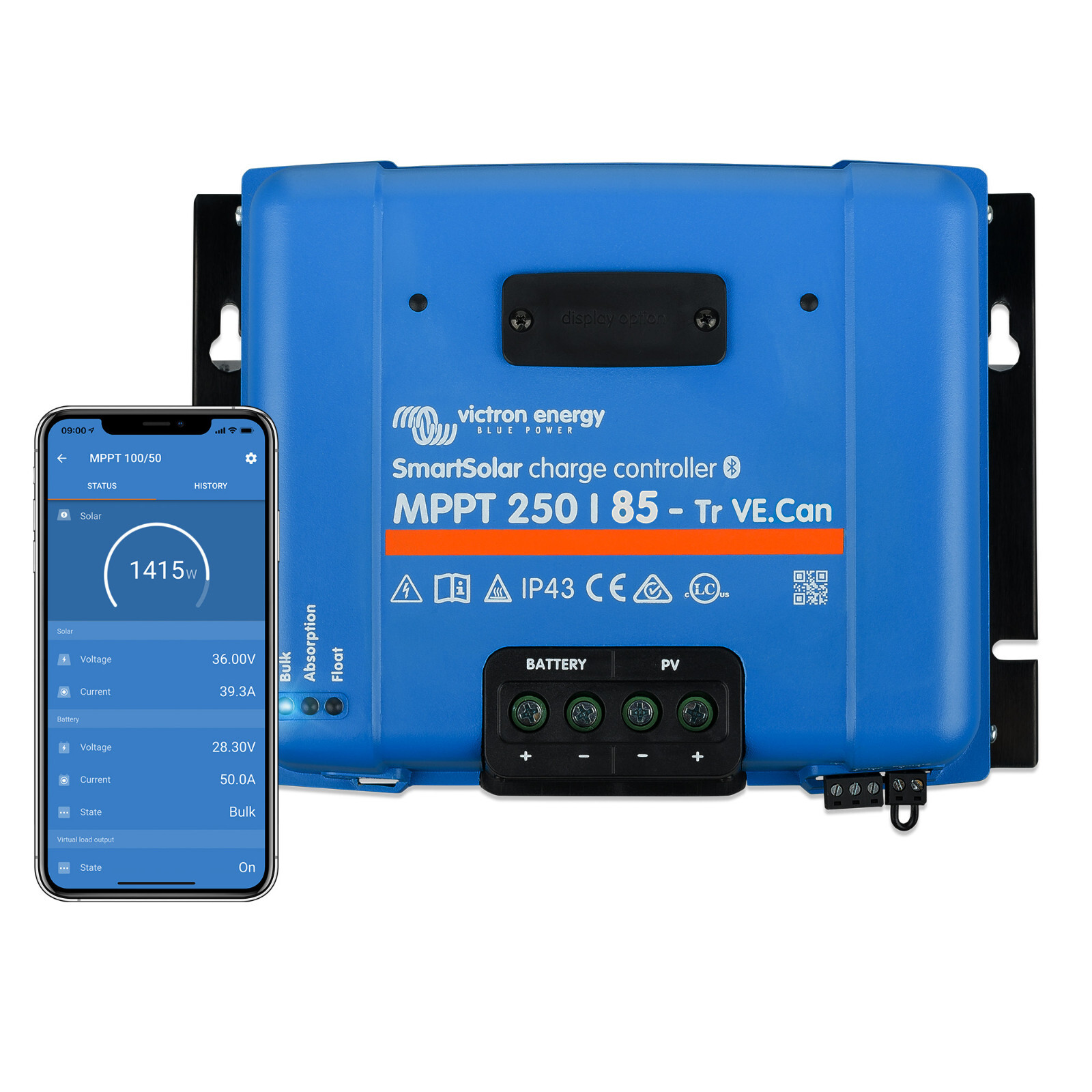 Überwachen Sie Ihren SmartSolar Laderegler und behalten Sie den Überblick mit der VictronConnect App. Konfigurieren Sie Ihren Laderegler und prüfen Sie Verlaufsdaten der letzten 46 Tage.