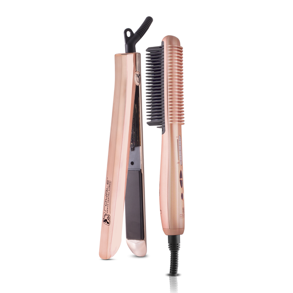 Royale Genius Heating Element Multi-Purpose Ceramic Hair Brush straightens your hair faster and works to seal the hair’s cuticle and locks in moisture. You will notice the same silky, glossy results that you get from a traditional flatiron, only handing of the Multi-Purpose Ceramic Hair Brush gives you results faster and with easier handling.