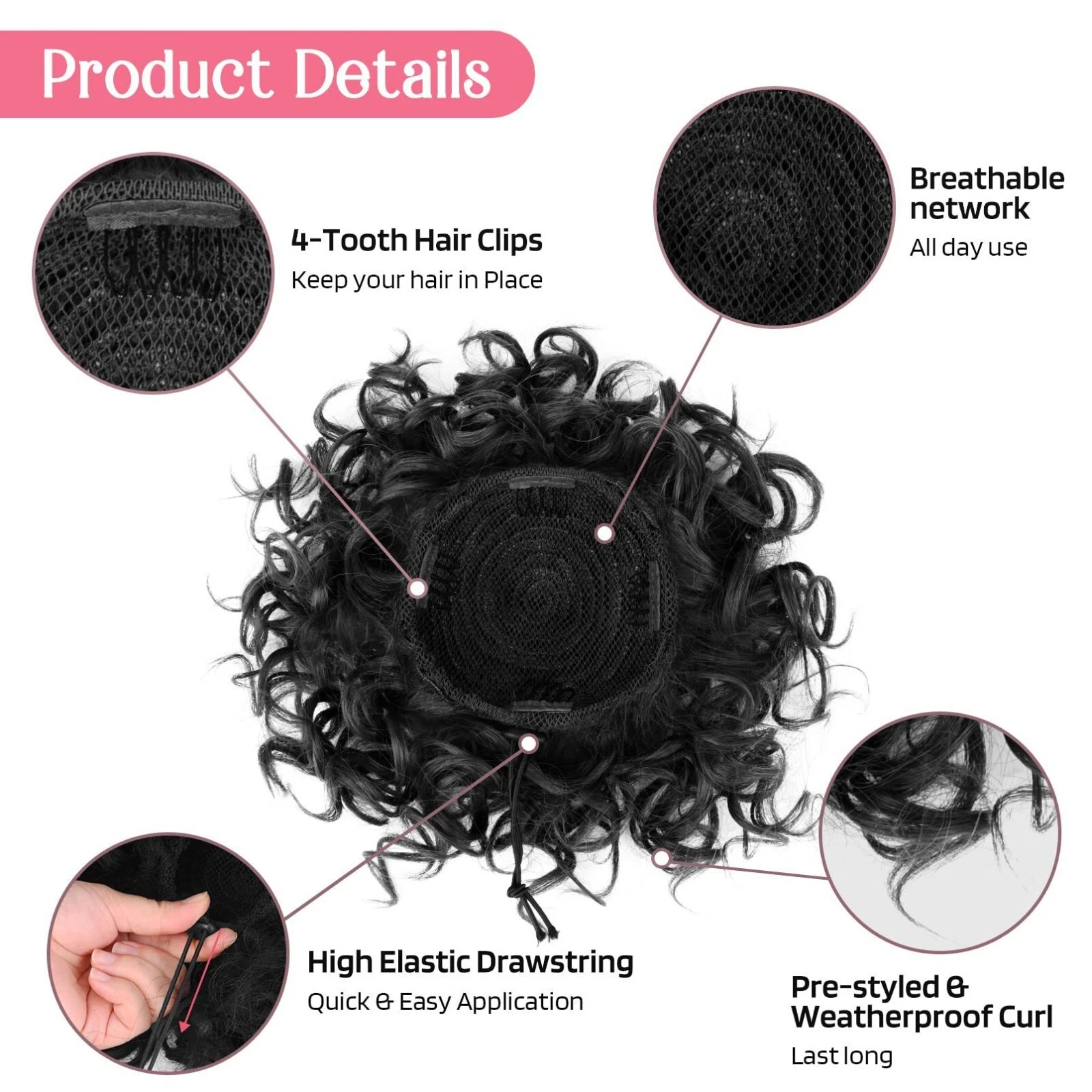 Messy Curly Bun Clip In Ponytail Synthetic Drawstring Clip on Puff Updo Chignon