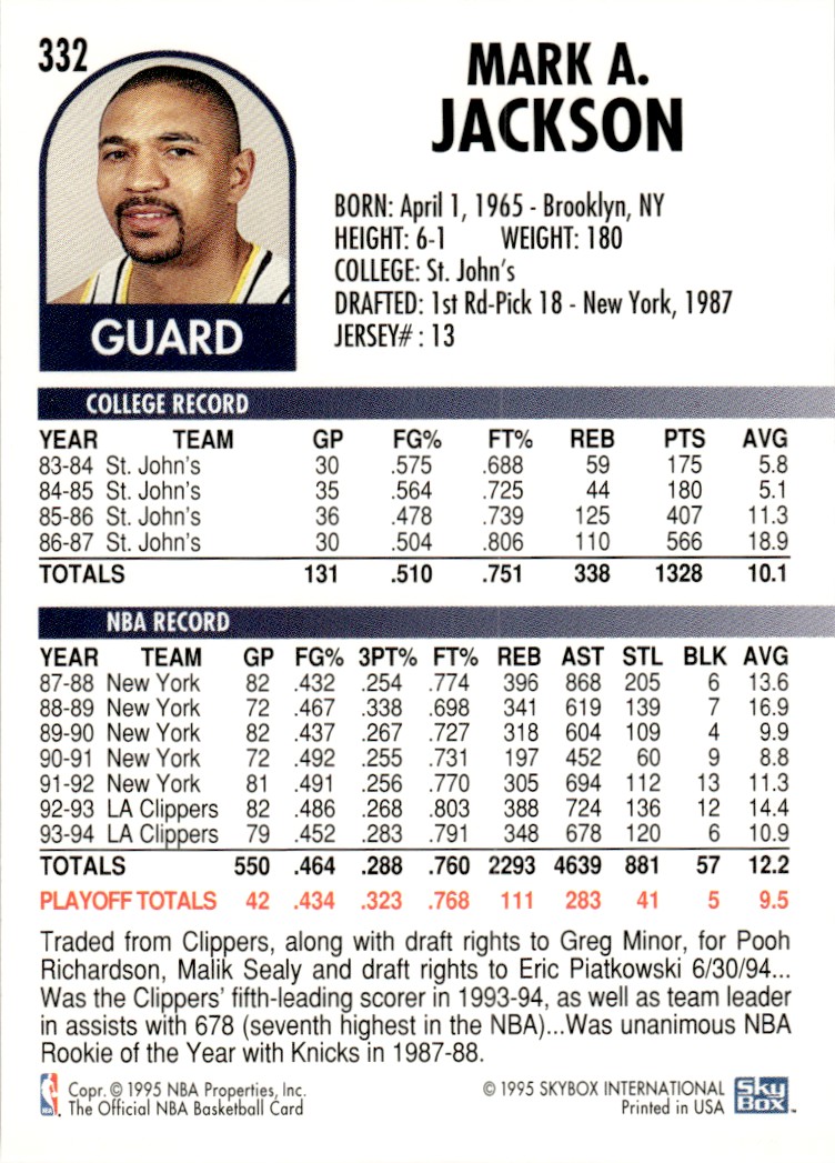 | 1994-95 NBA Hoops 332 Mark Jackson |