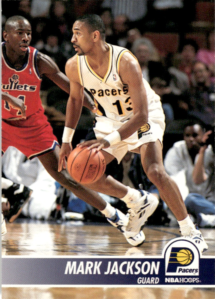 | Description: | Mark Jackson | | Category: | Basketball | | Year: | 1994 | | Product: | NBA Hoops | | Team: | Indiana Pacers | | Card Number: | 332 | | Dimensions: | 3½" x 2½" |