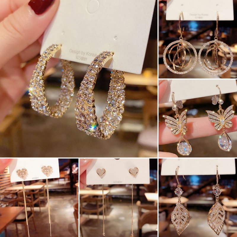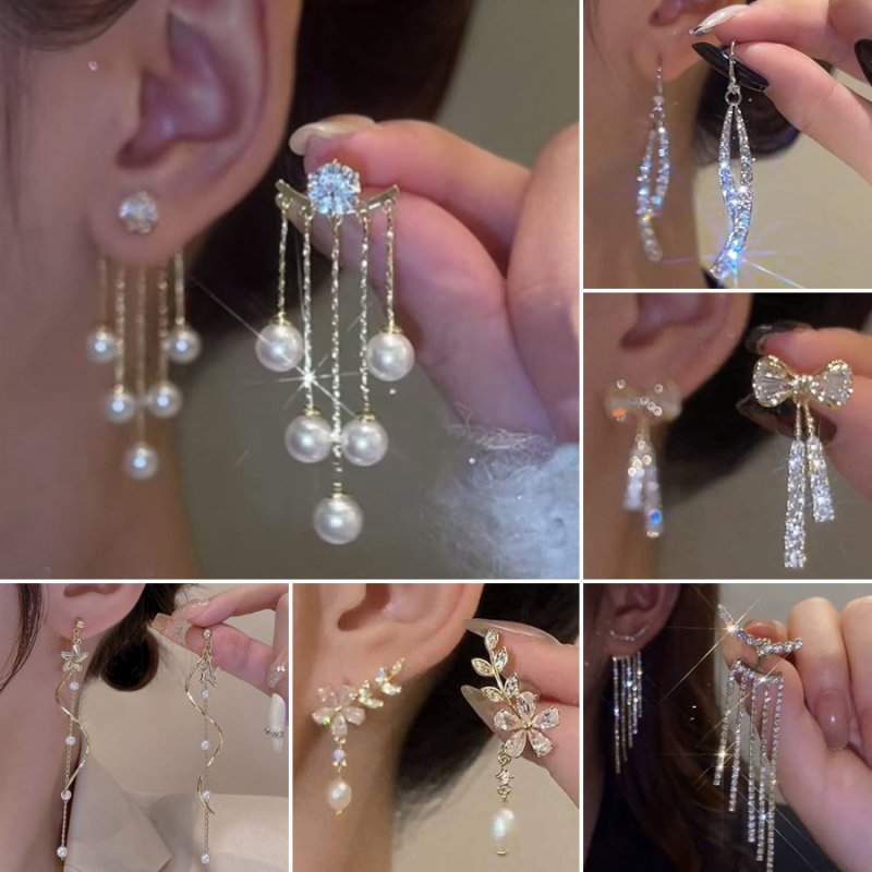 Fashion Zircon Crystal Tassel Earrings Stud Drop Dangle Women Wedding Jewelry