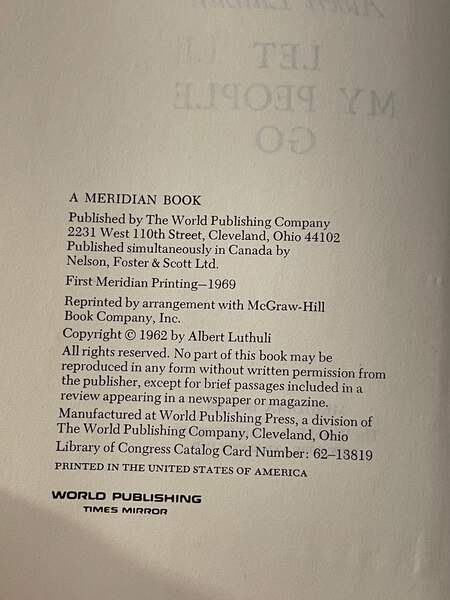 Let My People Go Albert Luthuli Autobiography 1969 African History