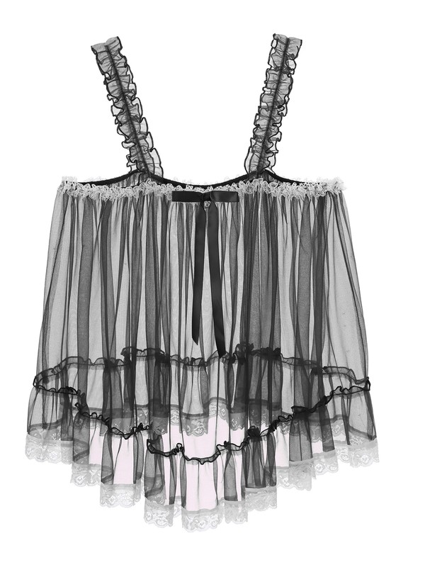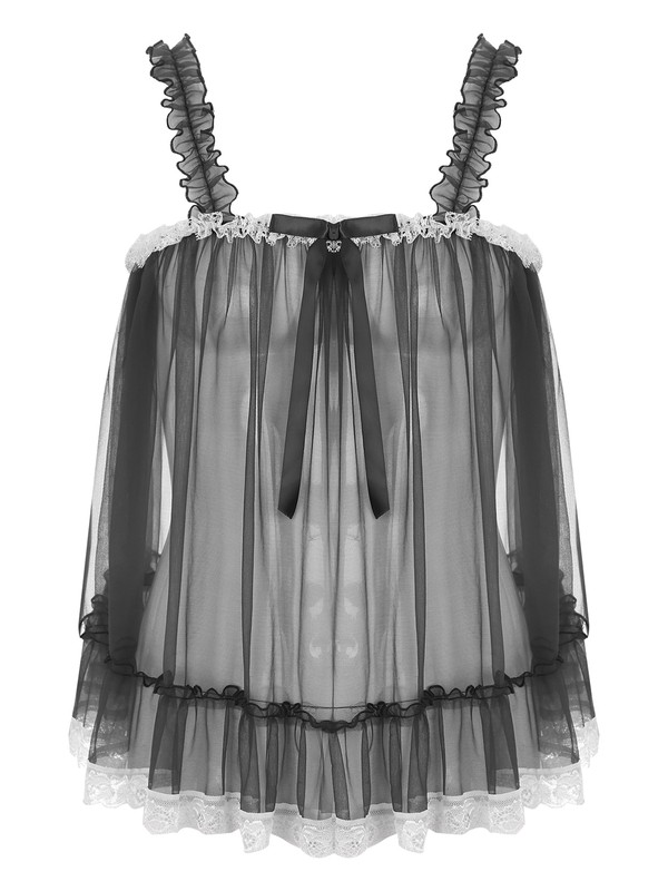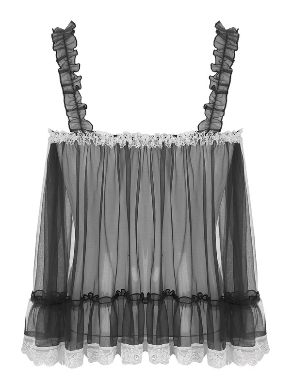 Designed with ruffle shoulder straps, one-layer mesh, pleated and flouncing details, slip top for sissy men, very sexy and impressive.