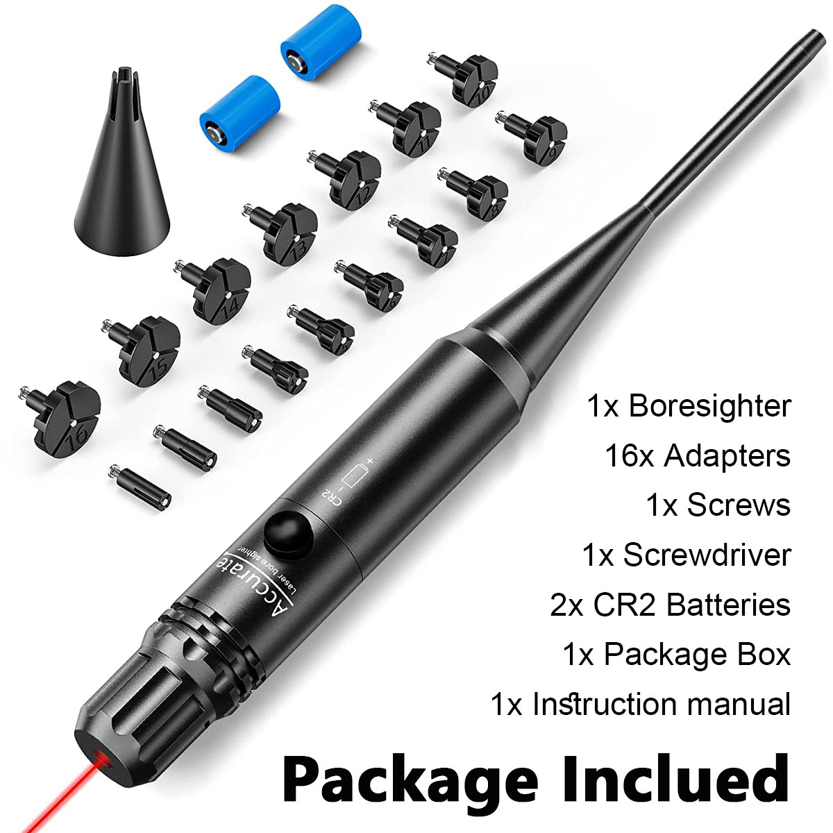【Upgraded 16 Adapters with Numbers】:EZshoot laser bore sighter comes with 16 adapters, which can be applied to .177-12GA caliber rifles and pistols, just choosing appropriate size adapter and place the laser unit in the muzzle.
