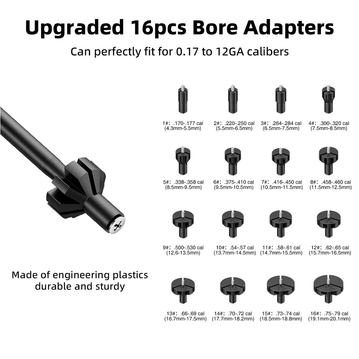 Comes with 16 adapters perfectly fit for 0.17 to 12GA caliber.