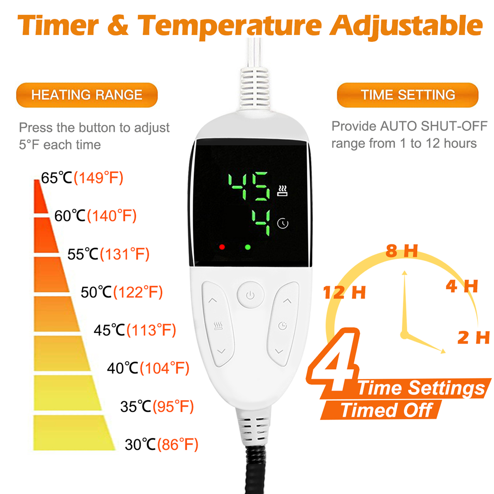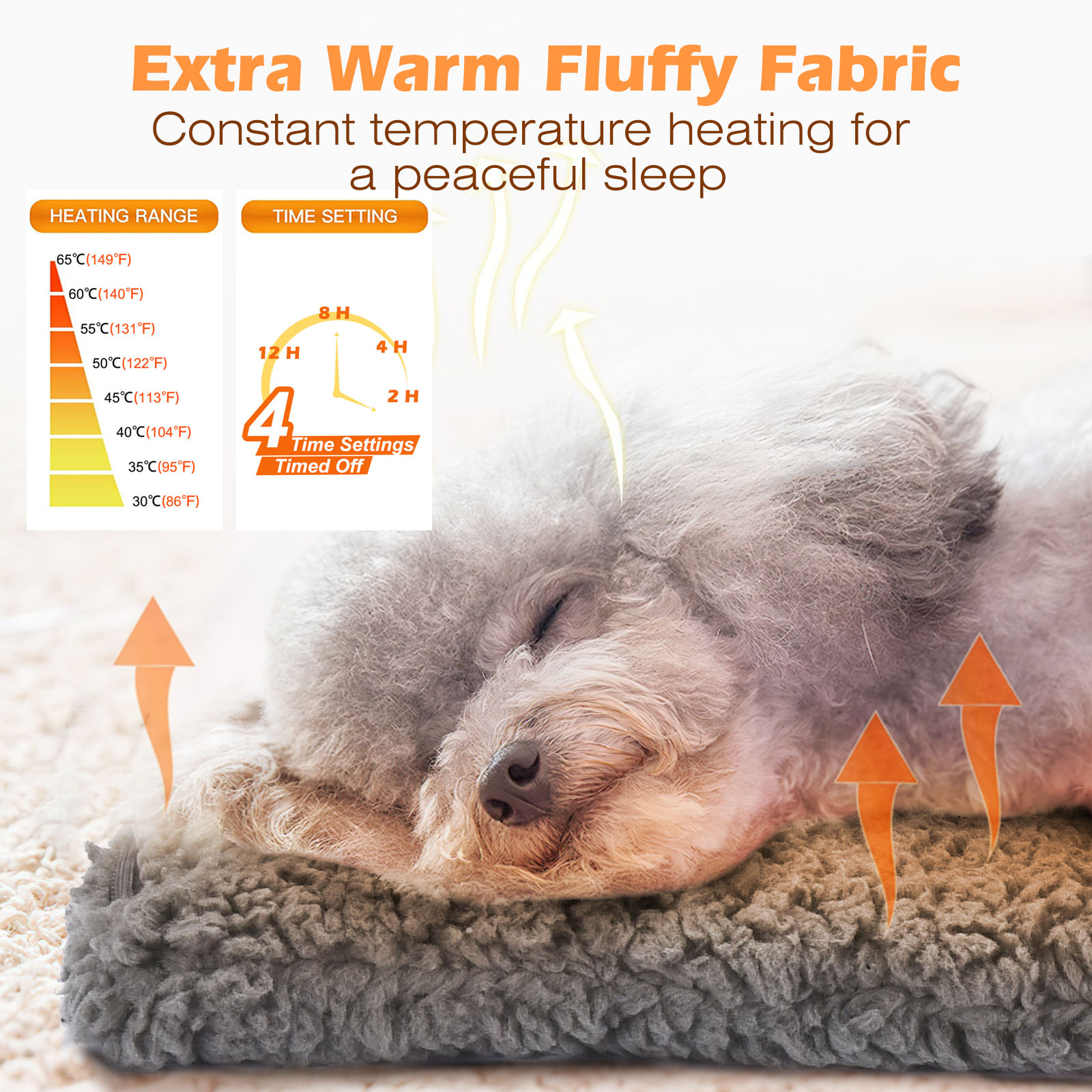 【Supports Always-on and 5 Level Timer】This dog heating pads have 15 timer options, always-on (time shows 00), 4,8,12,24,48h auto power off, which can save energy.
