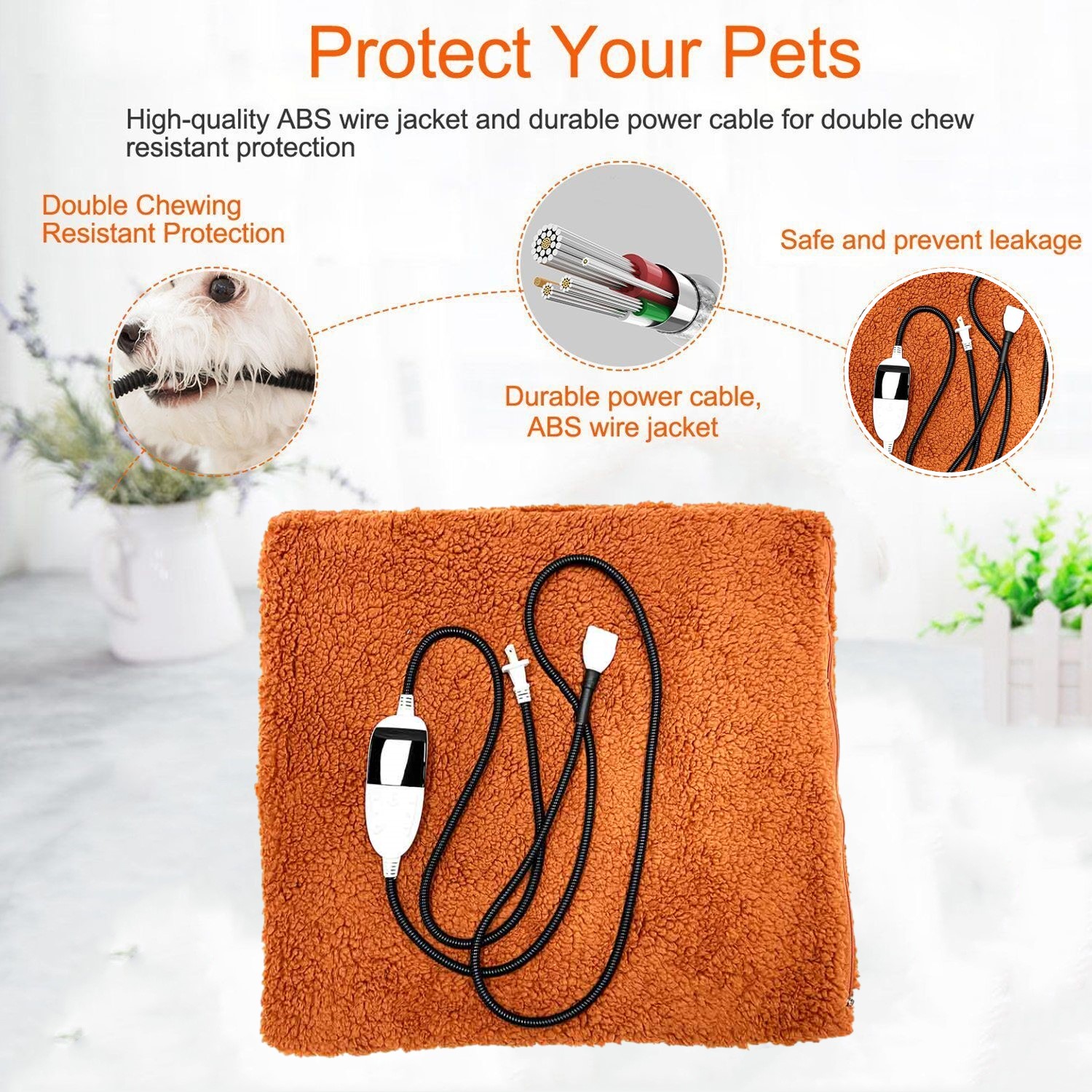[Five-layer structure, better protection] The shell is made of soft velvet material, with luster to the touch. The liner is made of flame retardant waterproof PVC film. The pet heating pad is made of needled cotton, which is flame retardant and heat preservation. The 5-layer protective construction, with UL-certified heating wire, can better protect your furry friend from burns and provide warm comfort for your pet. Tip: Do not use a cat heating pad without a velvet lid.