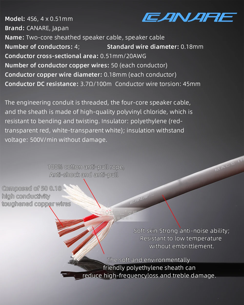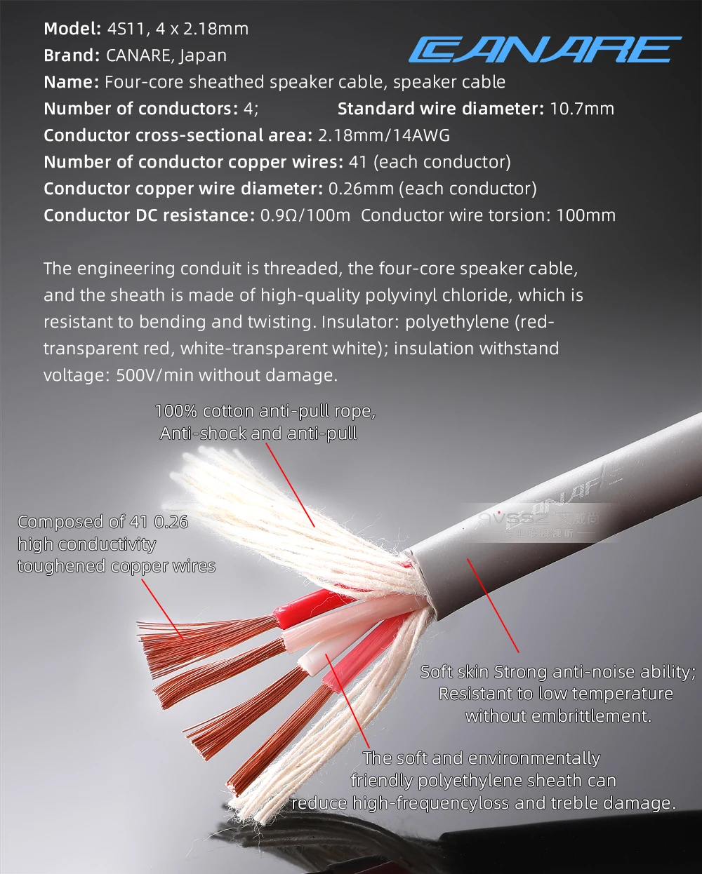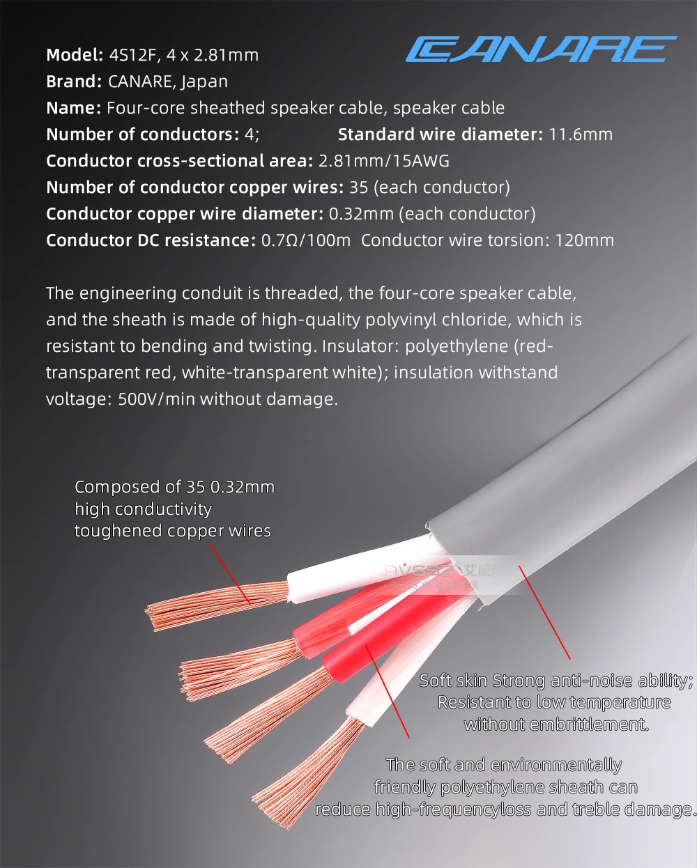 CANARE Speaker Cable Foure-core Audio Loudspeaker Surround Sound 2S7F, 2S9F, 2S11F, 4S6, 4S8, 4S11, 4S10F, 4S12F