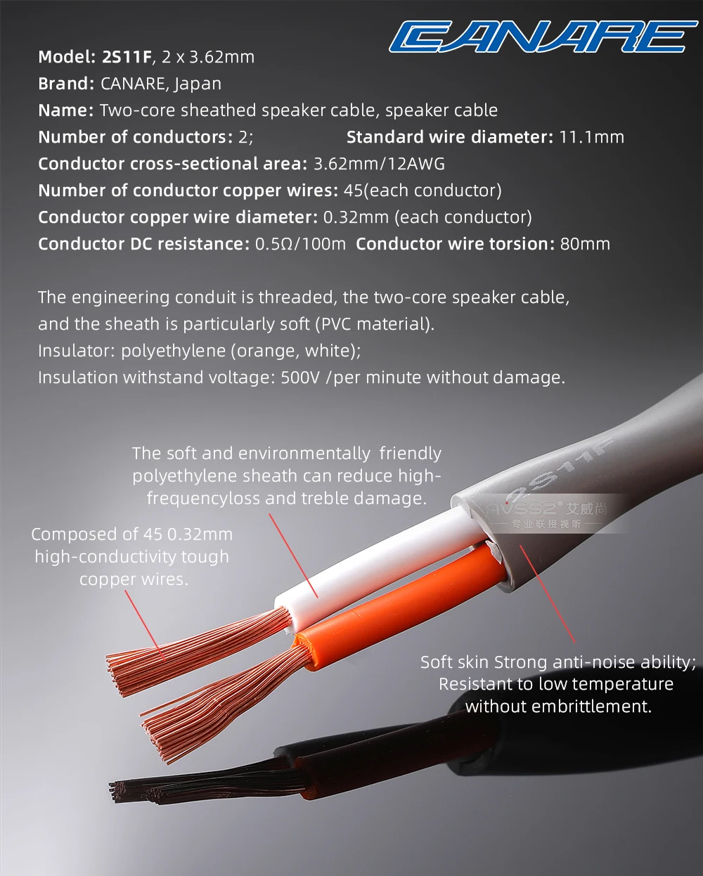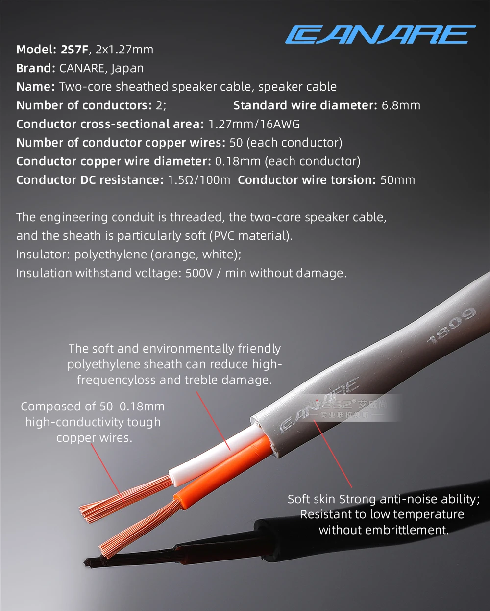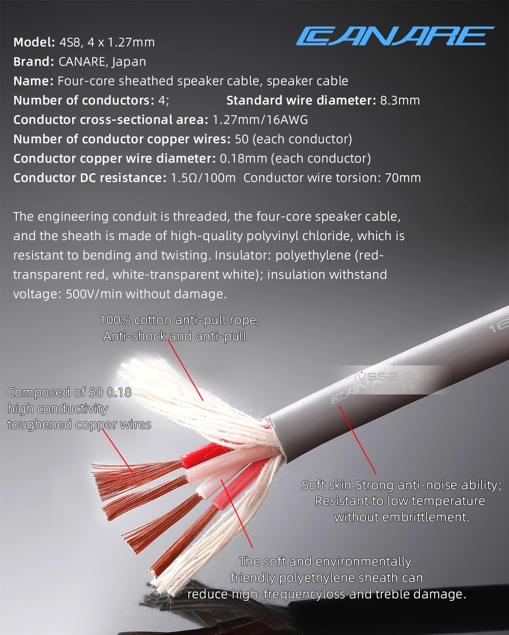 CANARE Speaker Cable Foure-core Audio Loudspeaker Surround Sound 2S7F, 2S9F, 2S11F, 4S6, 4S8, 4S11, 4S10F, 4S12F