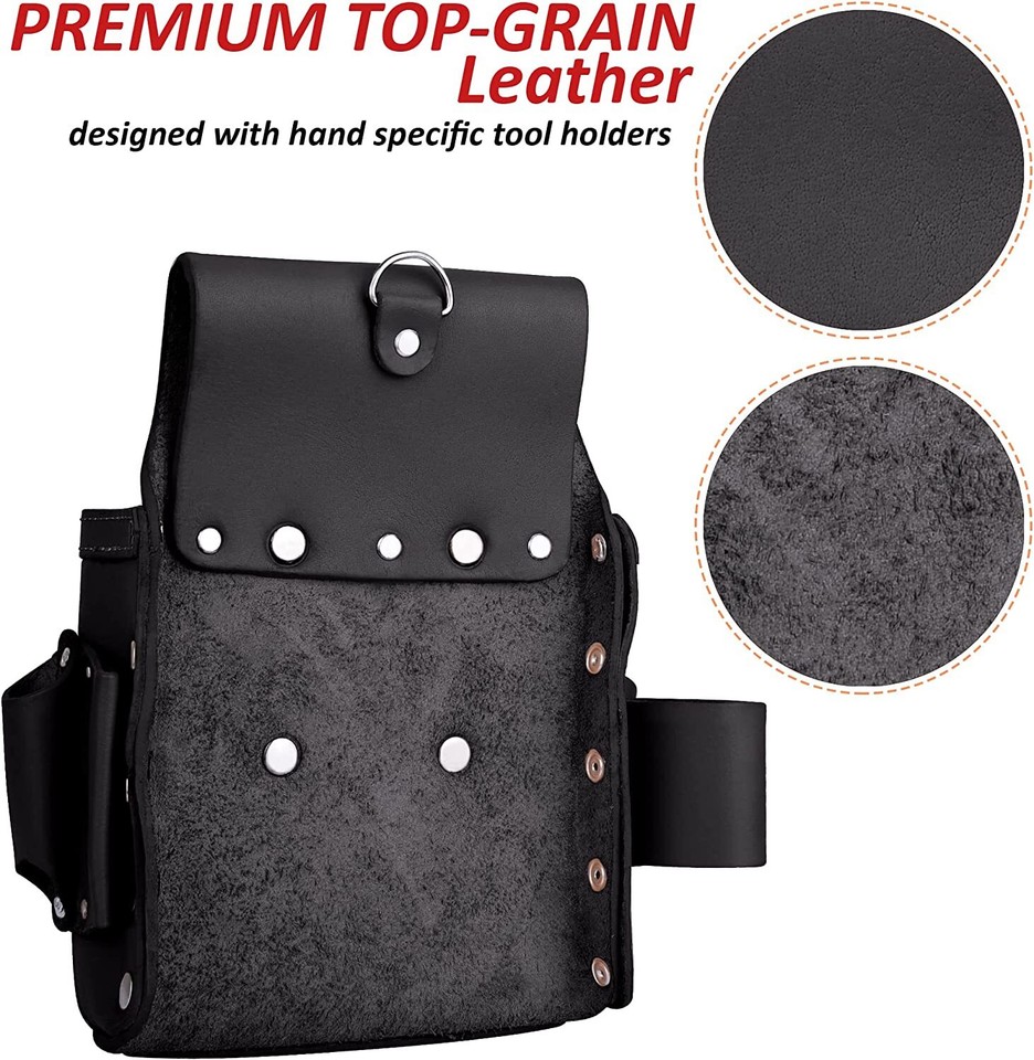 A Multitude of Compartments for Comprehensive Organization: Our cable technician tool bag presents an array of purpose-built pockets that cater to various needs. From tape holders to tool pockets, heavy-duty hooks, three robust compartments, wrench and screwdriver holders, to a spacious slot for larger tools, we've engineered comprehensive storage solutions that empower your work.◆ Quality leather - made from 100% top/ full grain leather- highest leather grade - not polyester or suede or even oil tanned leather.