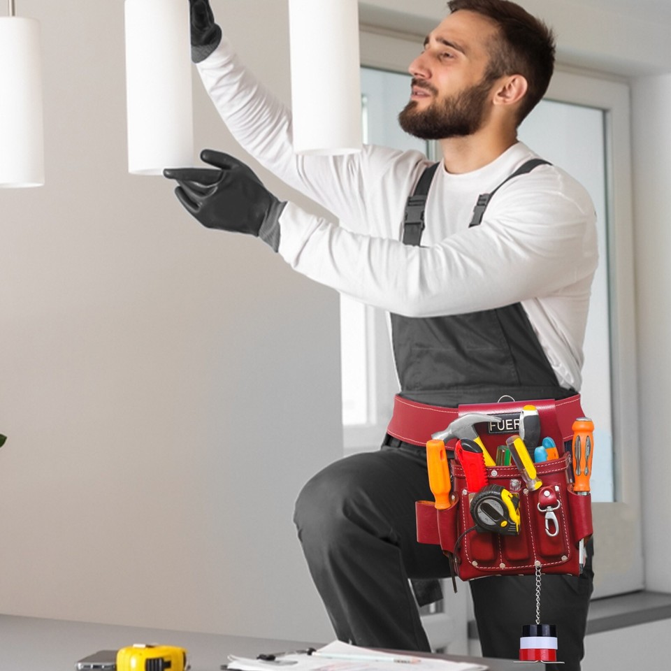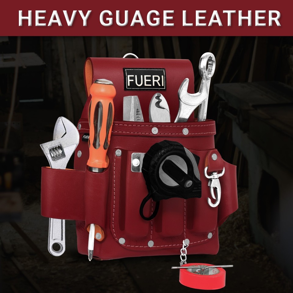 Enhanced Durability for Decades: At FUERI, we have elevated the electrician tool pouch to new heights by perfecting the design of our 4-pocket version. This innovative pouch stands as one of the most robust options available, offering exceptional sturdiness for lasting utility. By merging top-tier Professional grade heavy-duty Leather with riveted reinforcement, we've created a tool pouch that safeguards against the rigors of daily tasks in carpentry, electrical work, and gardening.