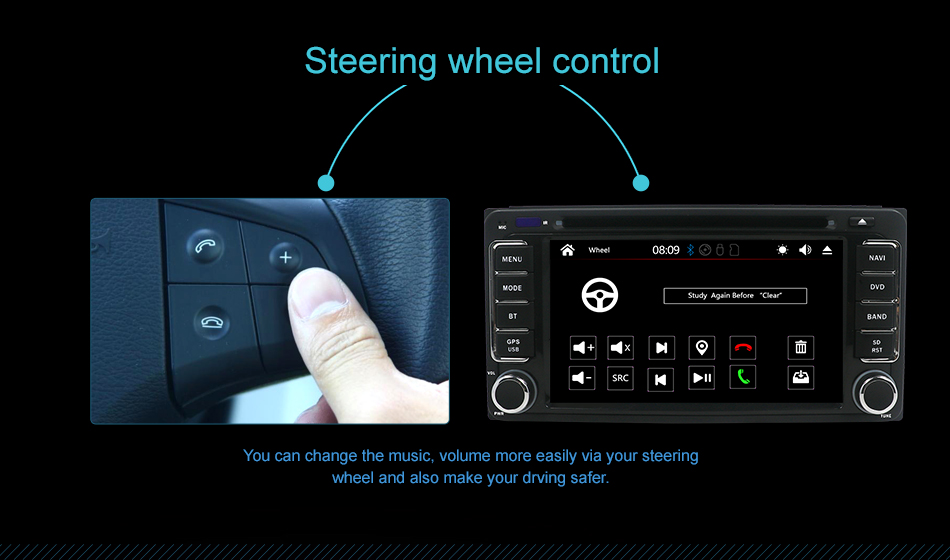●Steering Wheel Control:You can control the volume of the car stereo and use more hot keys directly on the steering wheel.