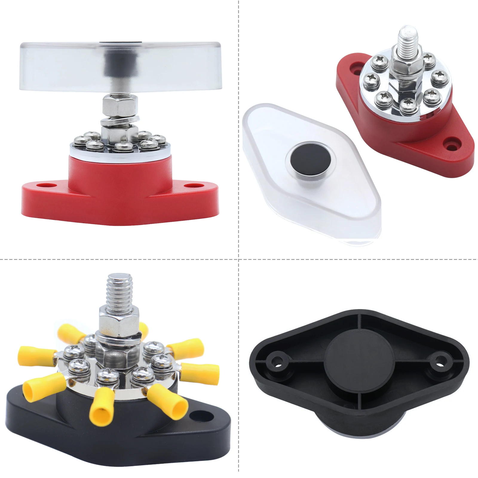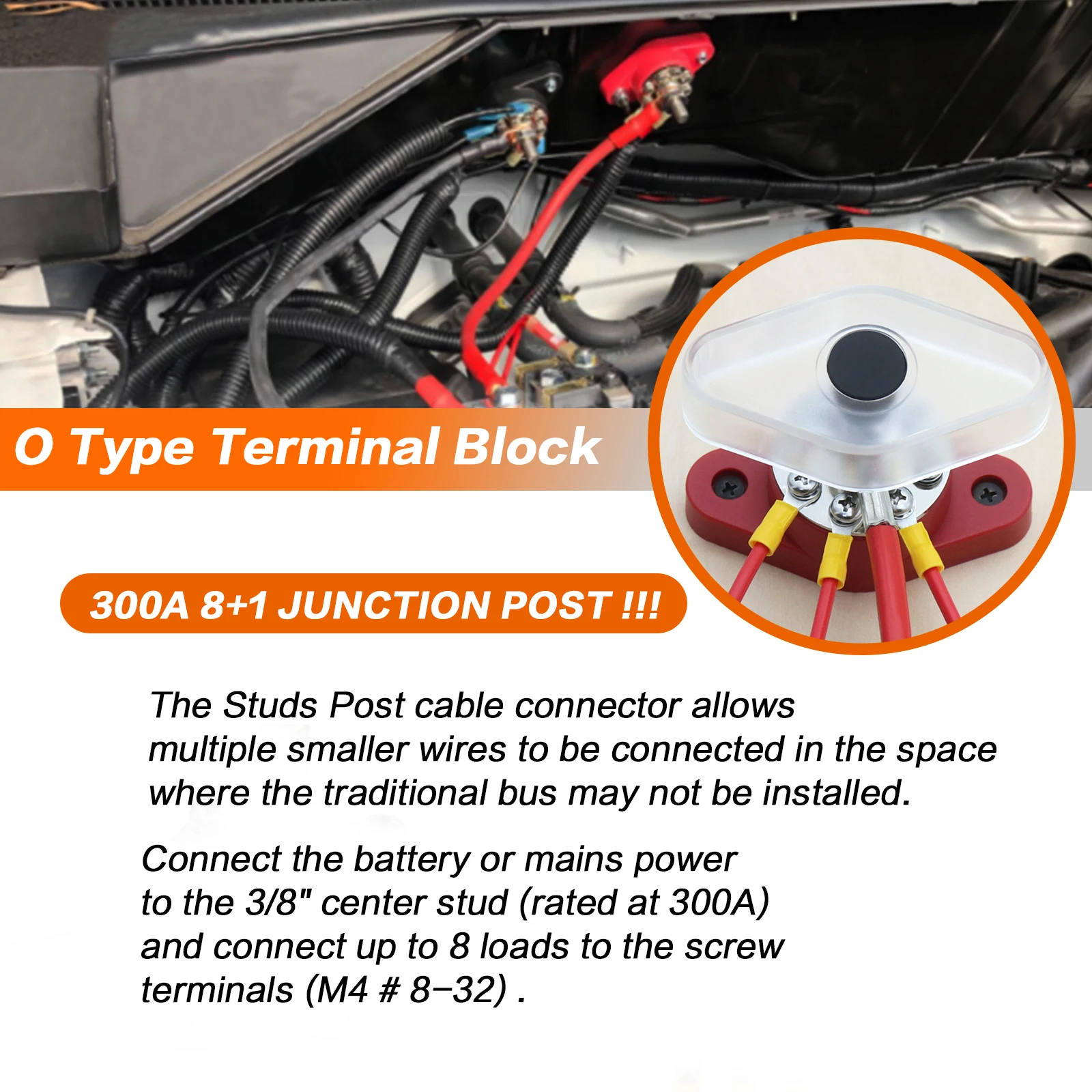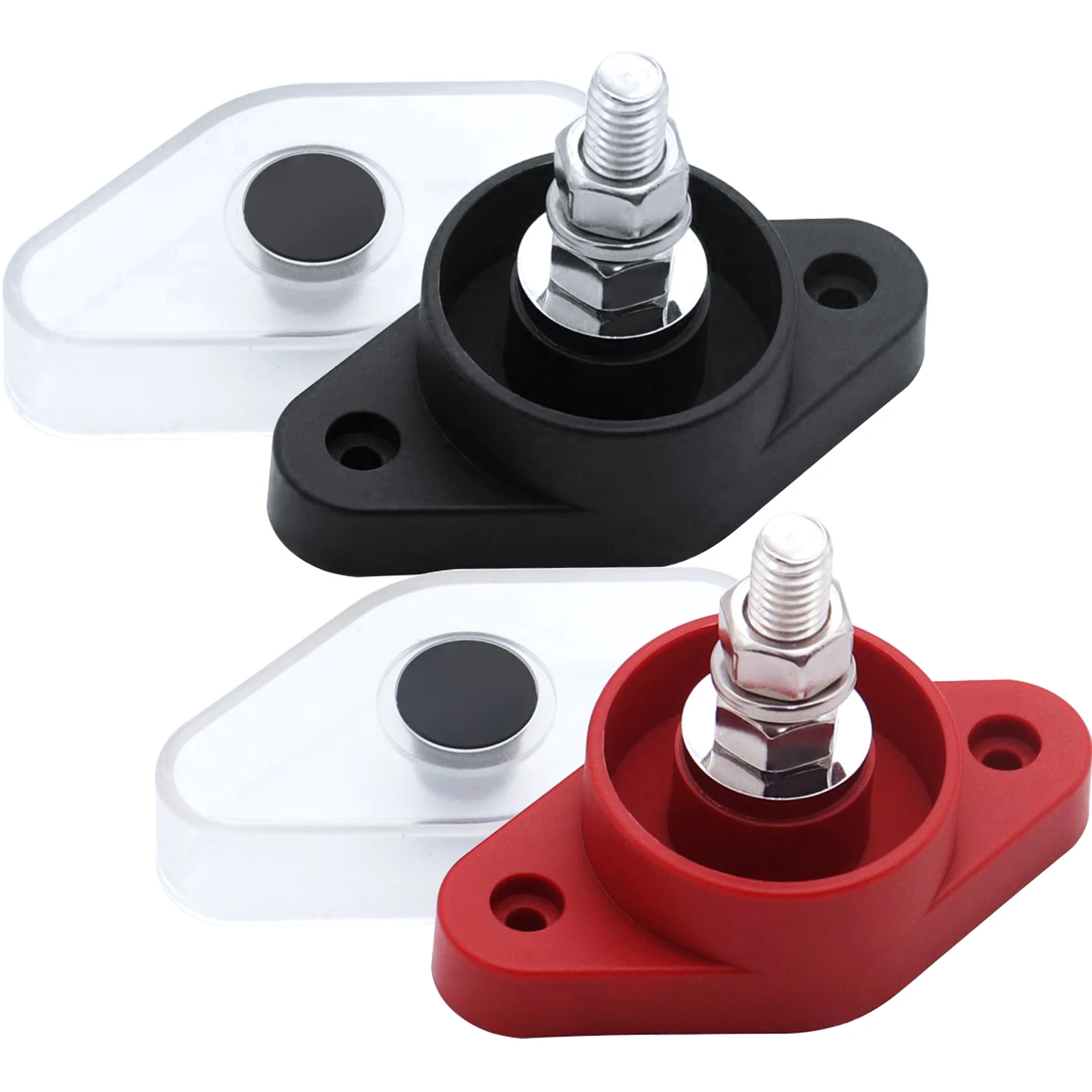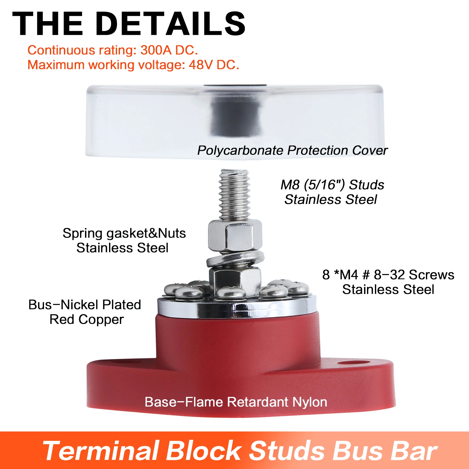 2pcs 300A Heavy Duty Circular Bus Bar M8 Terminal Block Stud for Positive Negative Battery Power Junction Post Buss Bar Kit in Red and Black