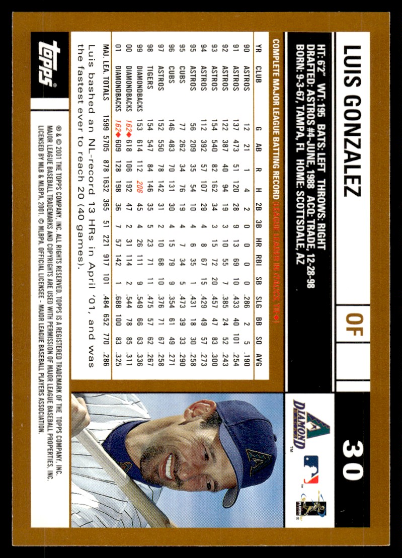 | 2002 Topps Luis Gonzalez Baseball Card Arizona Diamondbacks #30 |