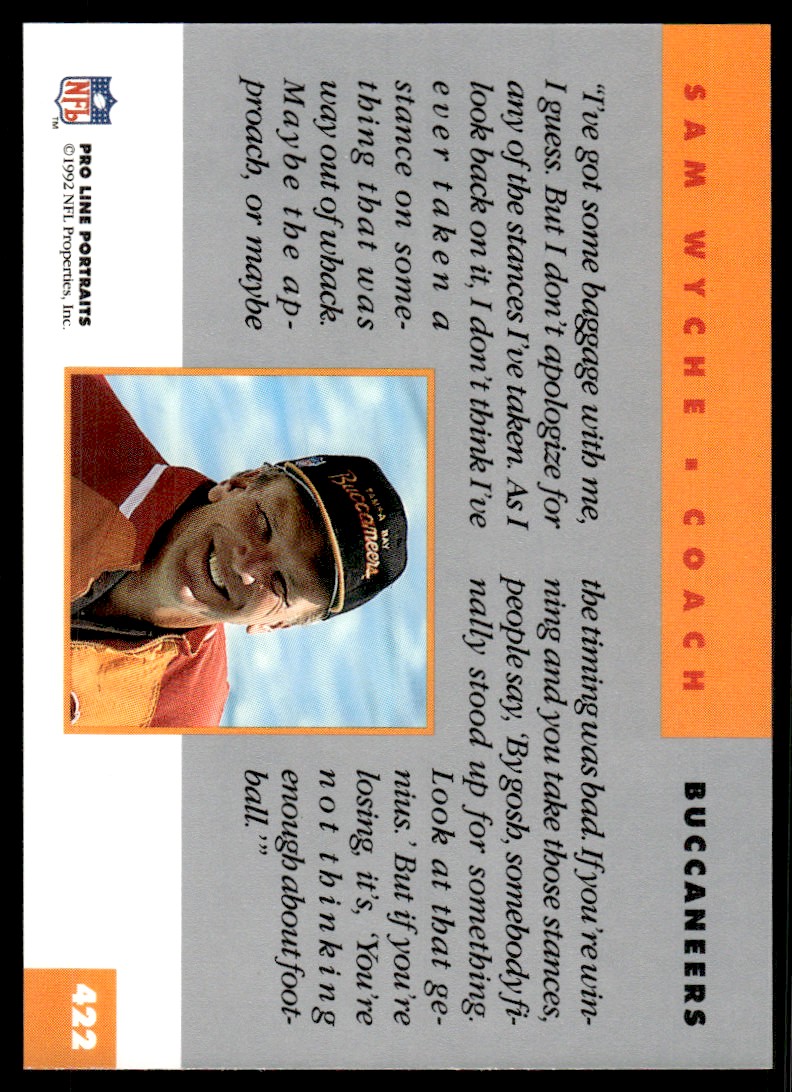 | 1992 Pro Line Football Card Sam Wyche Tampa Bay Buccaneers #422 |