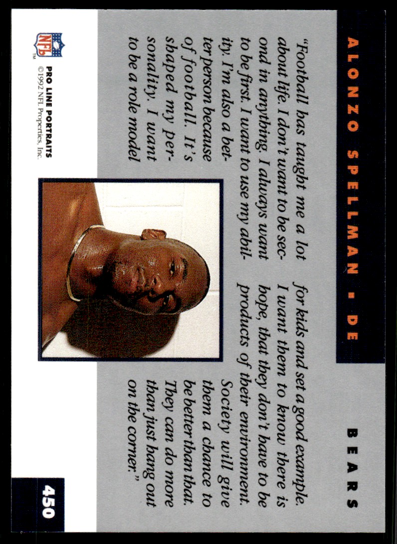 | 1992 Pro Line Football Card Alonzo Spellman Rookie Chicago Bears #450 |