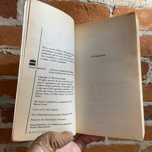 Blurb: “Fantastic, electrifying, outrageous, terrifying, provocative-these are the potent ingredients that lain Banks has skillfully mixed into this wonderfully imaginative novel.