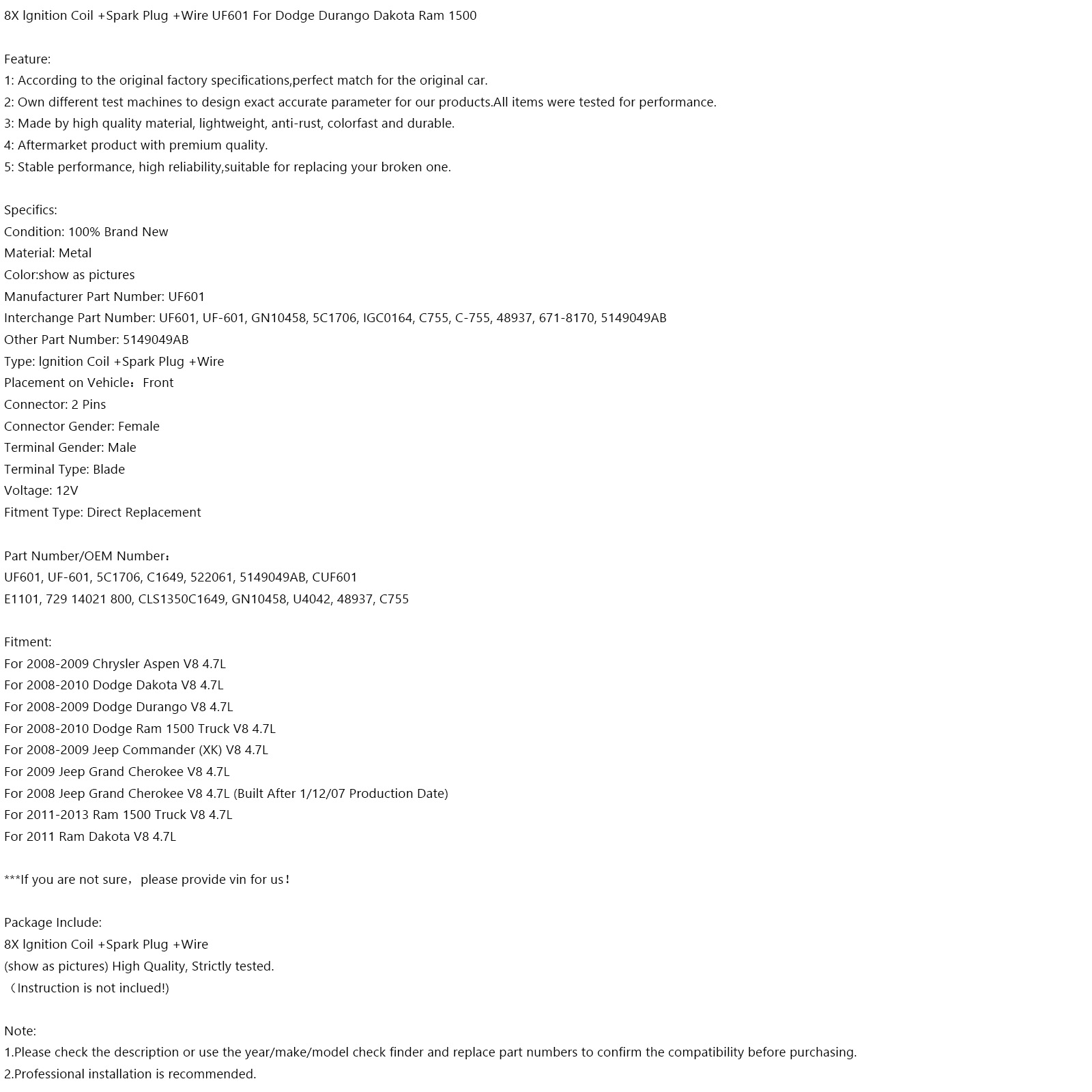 1.Please check the description or use the year/make/model check finder and replace part numbers to confirm the compatibility before purchasing.