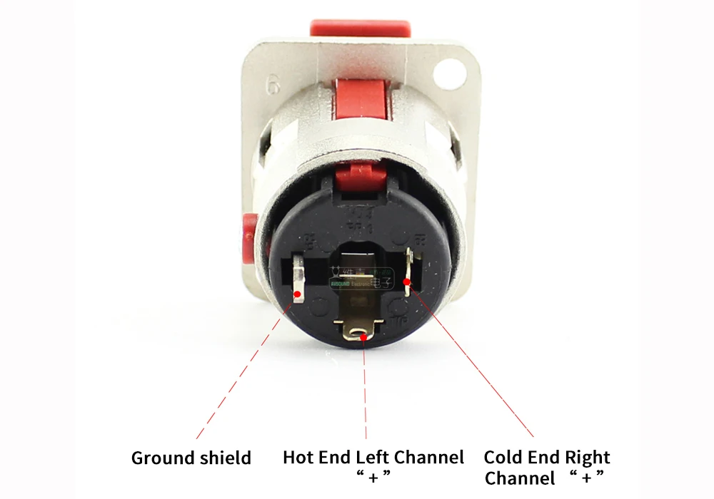 The 3 pole phone jack panel mount version provides stable and secure connections where accidental disconnect or shock and vibration may occur. It latches with standard A-gauge mono or stereo plugs. Plug locks-in automatically when mating and unlocks only by pressing red release tab. Standard D size front panel appearance. Selectable grounding options.