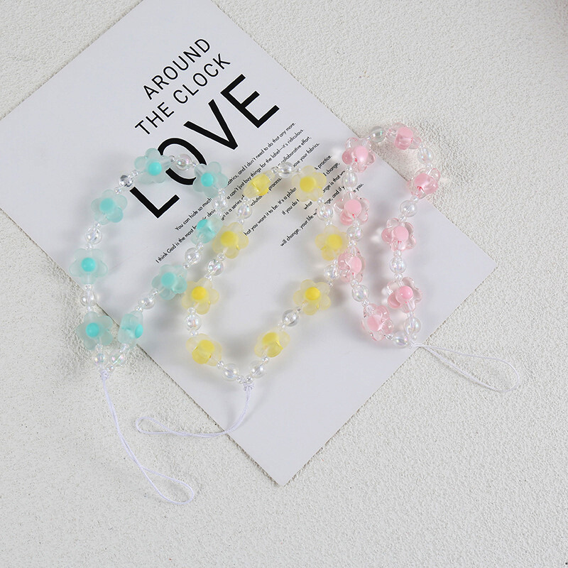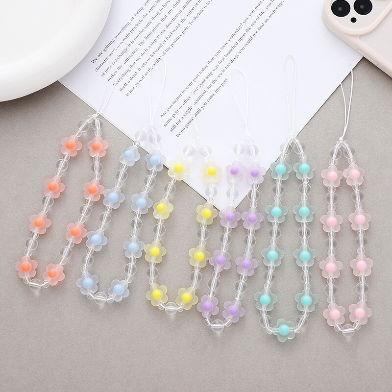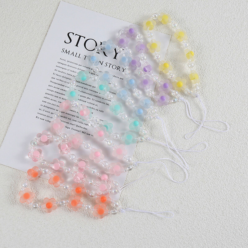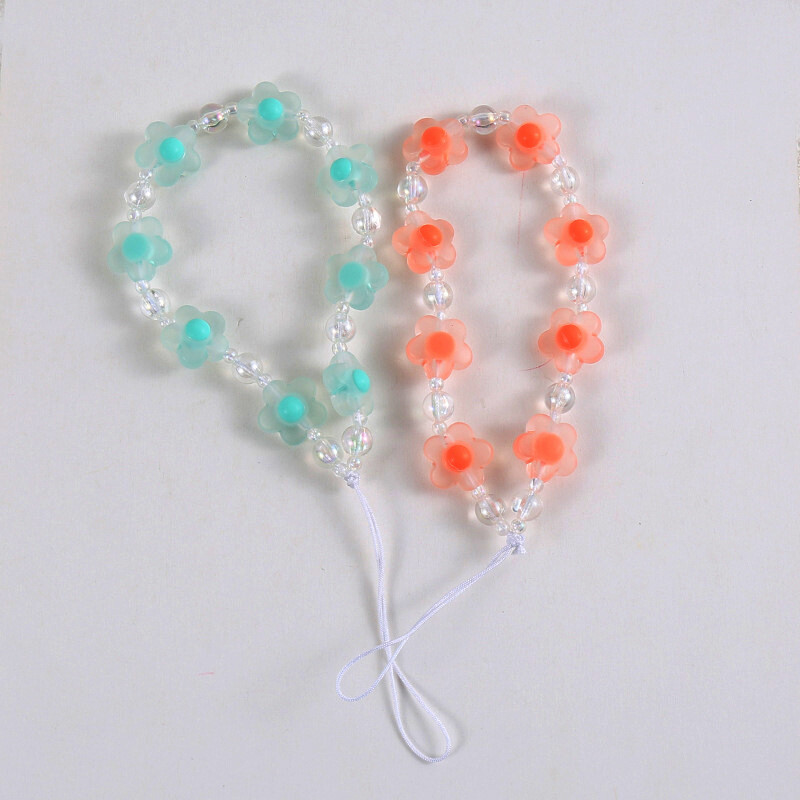 3. Acrylic flower beaded mobile phone chain, DIY jewelry frosted flower phone case anti drop strap