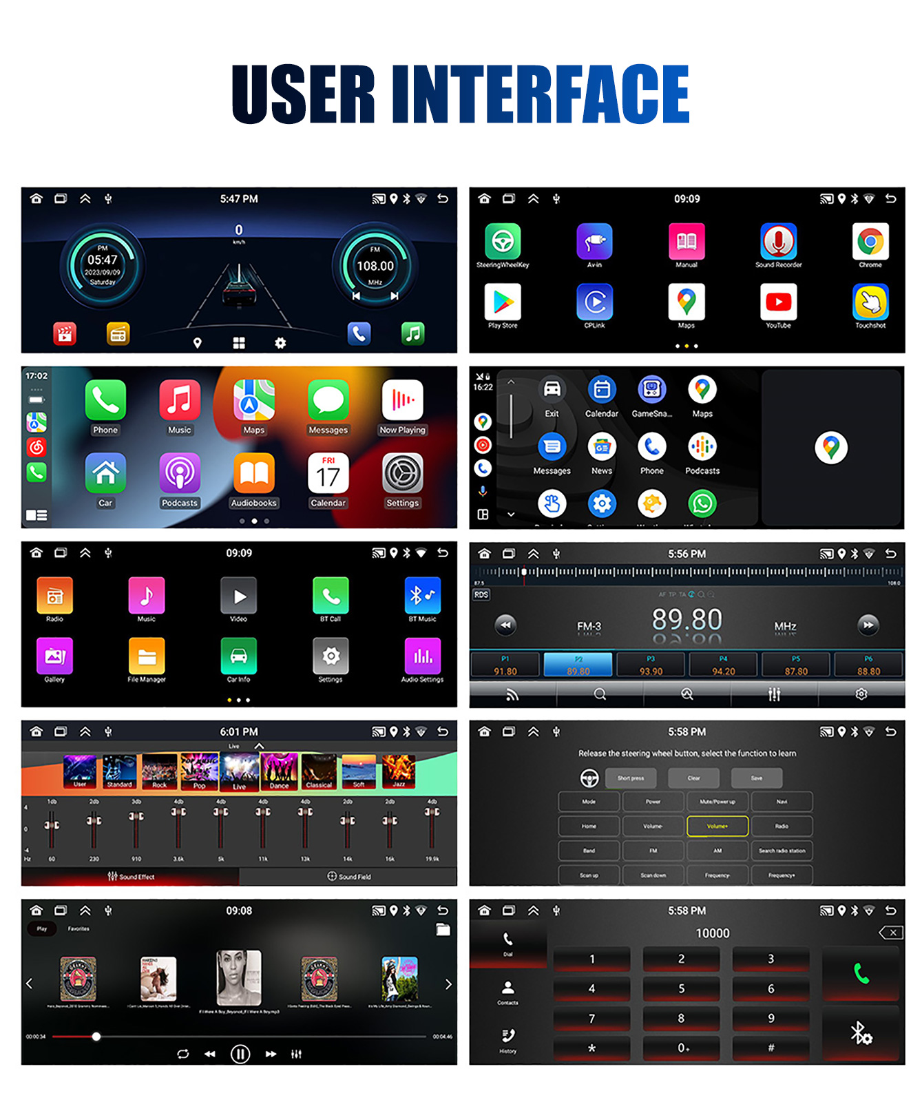 MIRROR LINK & APPLE CARPLAY & ANDROID AUTO: With this car radio, you can experience the amazing Mirror Link function, compatible with iOS and Android phones. You can mirror your smartphone screen to the car radio using apps like Google Maps, Spotify, Youtube, etc. Replace your cell phone with the car screen and turn your vehicle into a smart platform. Immerse yourself in a seamless and user-friendly infotainment experience with Apple CarPlay & Android Auto. Connect your iPhone to Apple CarPlay or your Android smartphone to Android Auto and securely access calls, texts, navigation, music and more. With intuitive operation via the touchscreen or voice control, you have all functions at your fingertips while you remain safely at the wheel. Use your favorite apps and stay connected at all times while keeping your eyes on the road. Turn your vehicle into an extended hub for your mobile devices and experience a new dimension in infotainment.