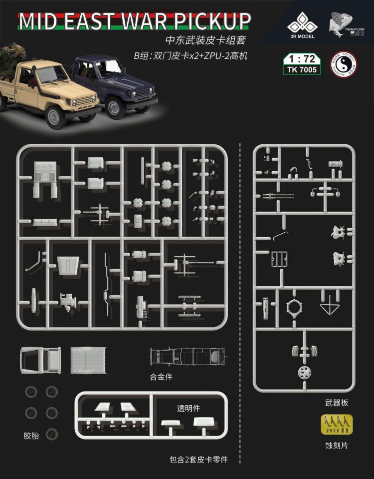 3RMODEL TK7005 1/72 Mid East War Pickup + ZPU-2 Model Kit