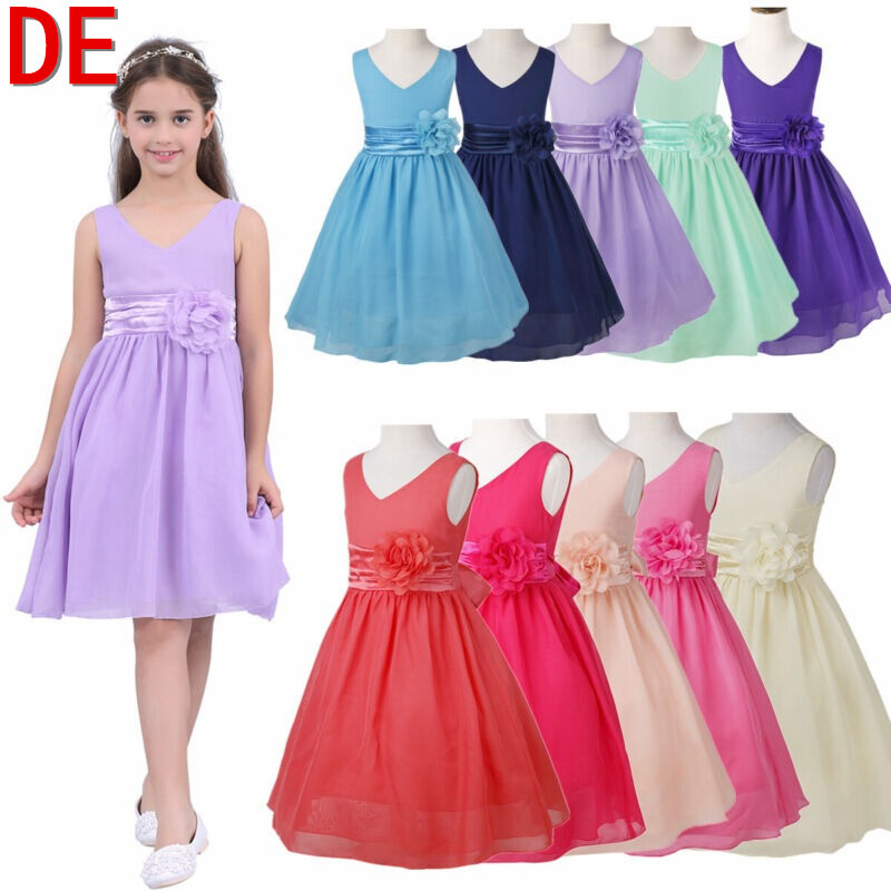 DE iEFiEL Mädchen Festlich Hochzeit Prinzessin Kleid Lang Blumenmädchenkleid