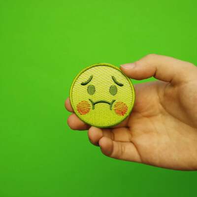Add this Nauseated Emoji embroidered patch to your growing emoji collection.