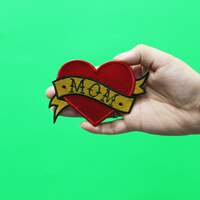 Add this Mom Heart Tattoo embroidered patch to your growing mom collection.