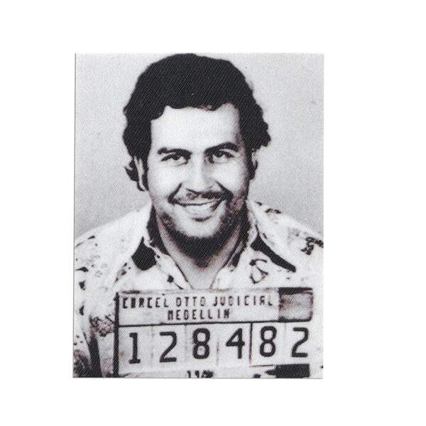 Agrega este parche impreso Mugshot de Pablo Escobar #128482 a tu colección. Este parche mide aproximadamente 2 5/8 pulgadas de ancho por 3,5 pulgadas de alto. Este parche viene con un respaldo termoadhesivo fácil de aplicar.