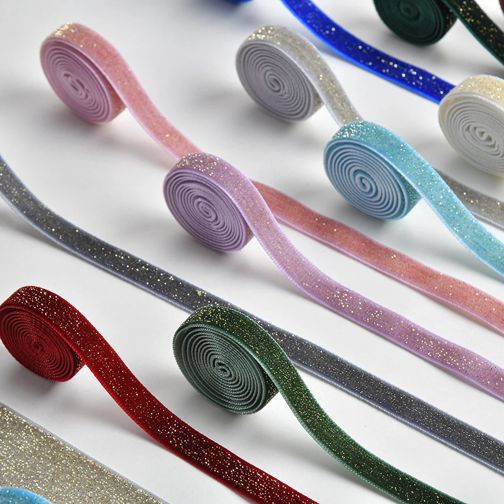 6/10/25mm 10Yards/Lot Colour Single Face Glitter Sold Wire Velvet Ribbon Fabric Trim Eco-Friendly For Wedding Gift Wrapping Hair Bows Christmas Wreath Bowknot Home Decorating Handmade Craft Ornaments