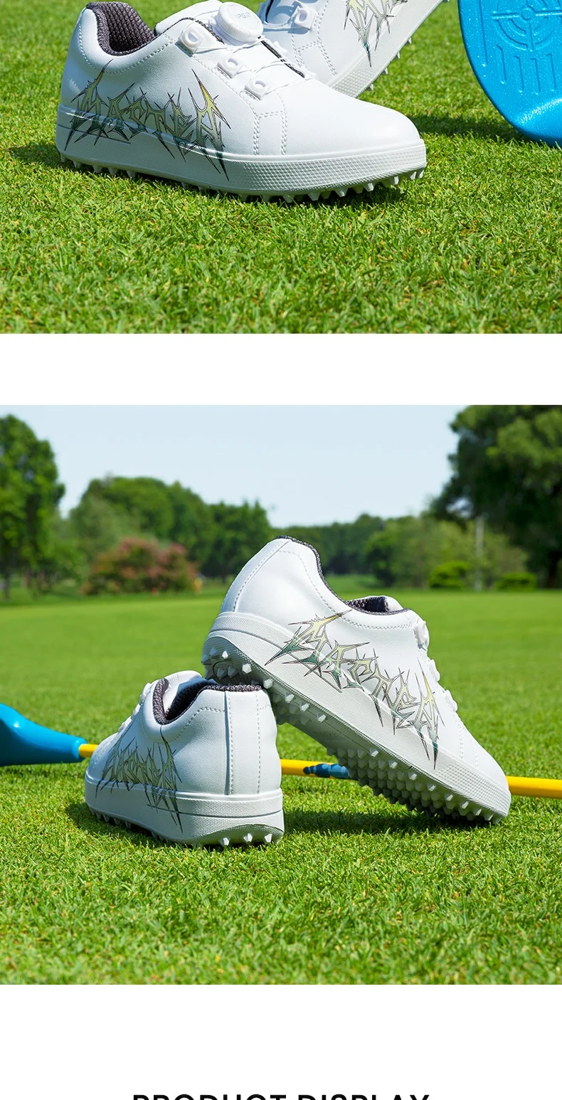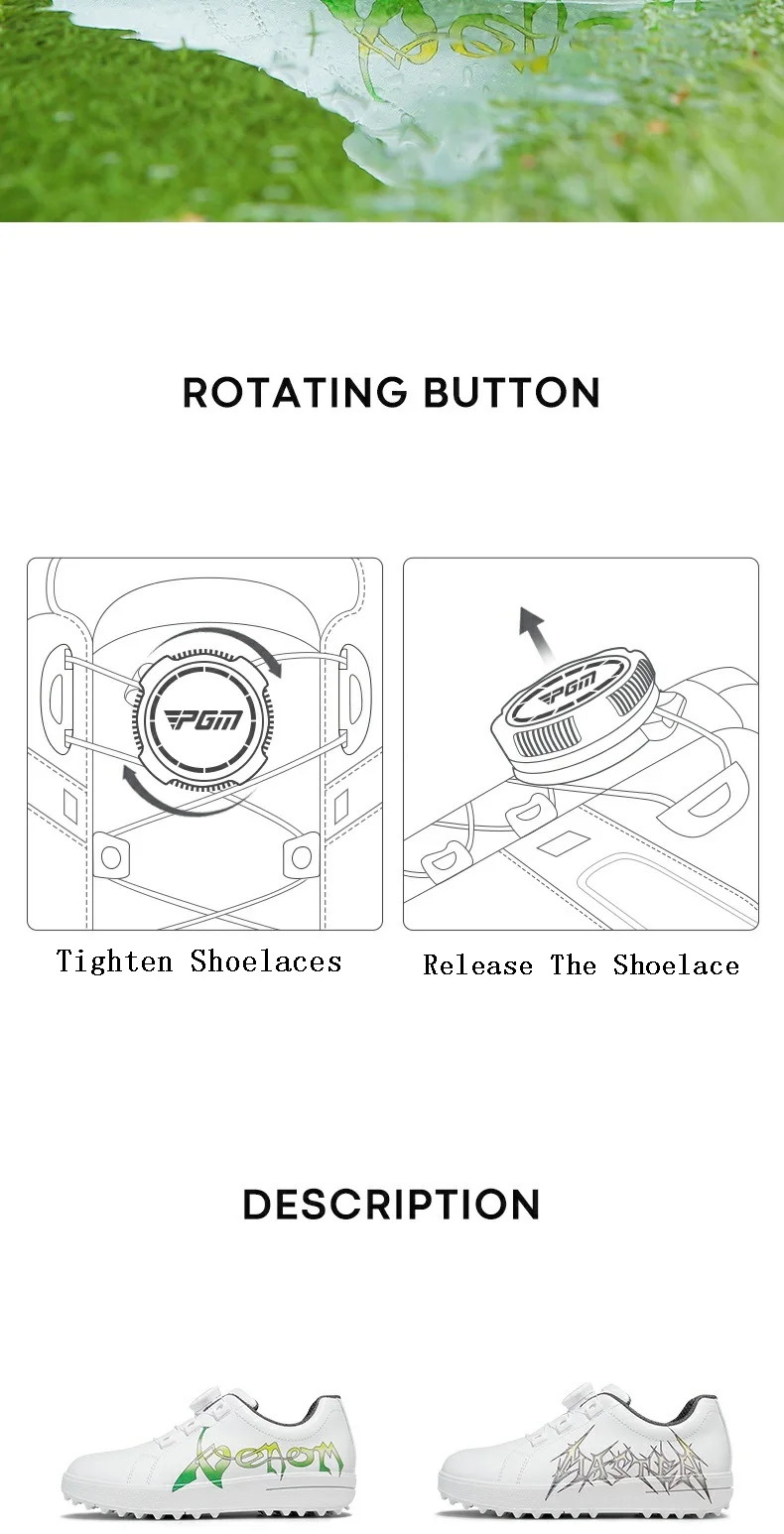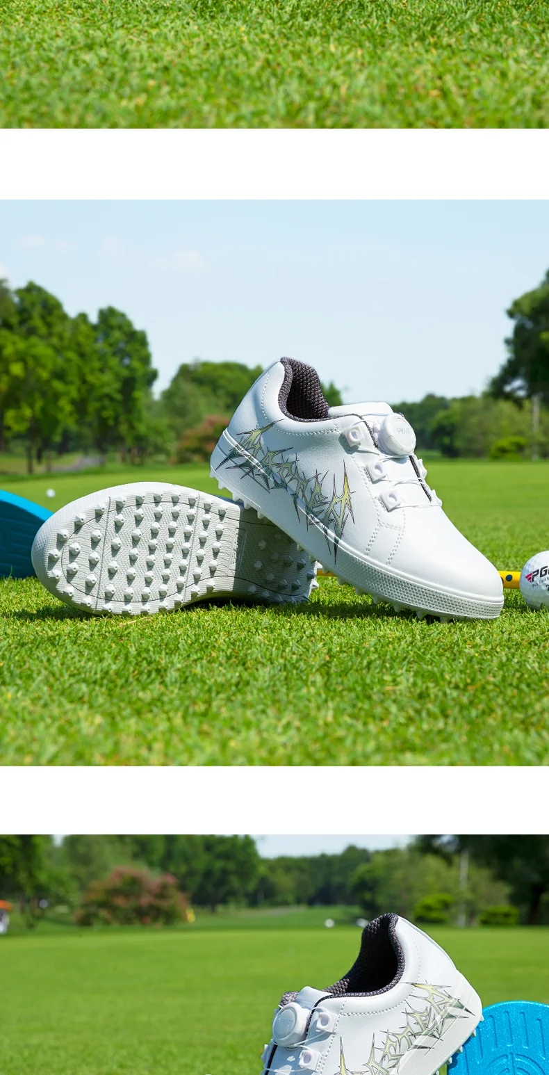 PGM Children Waterproof Golf Shoes Boy Girl Breathable Rotating Buckle Sneakers Teen Non-slip Printing Shoes Trainers Size31-38