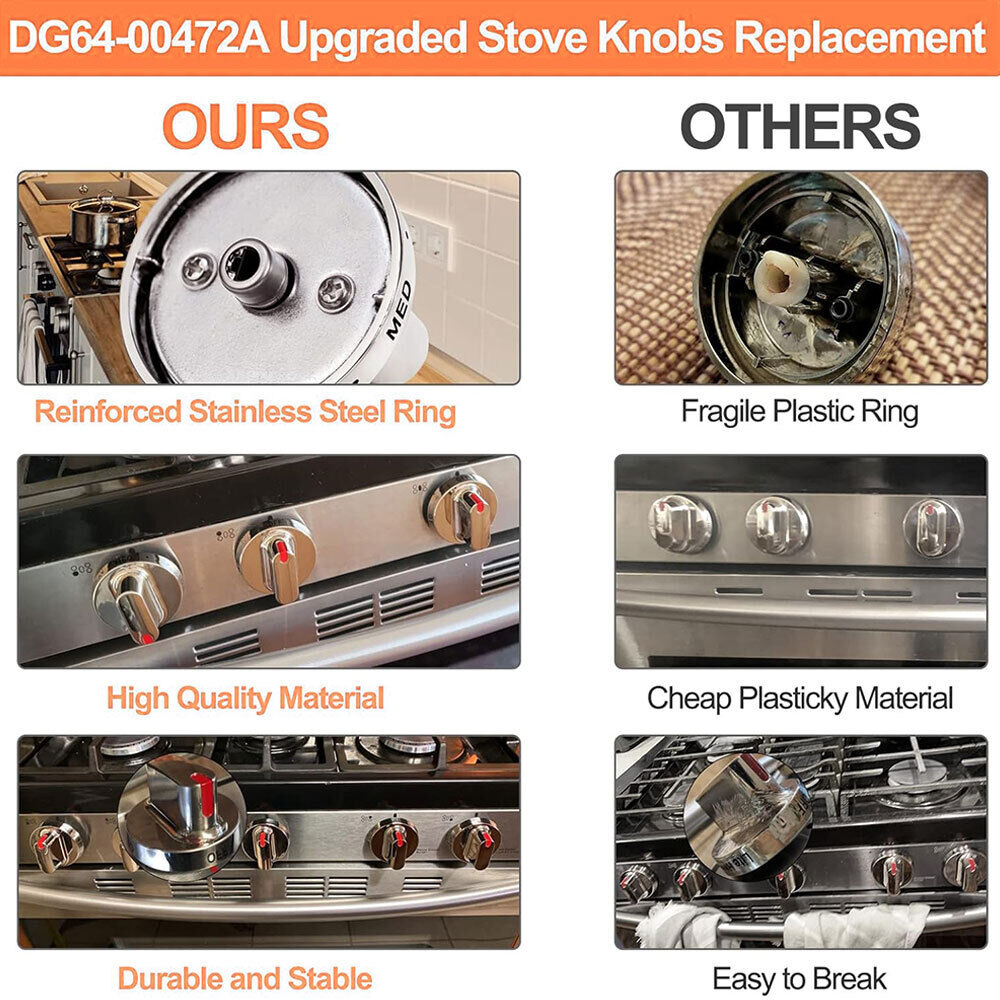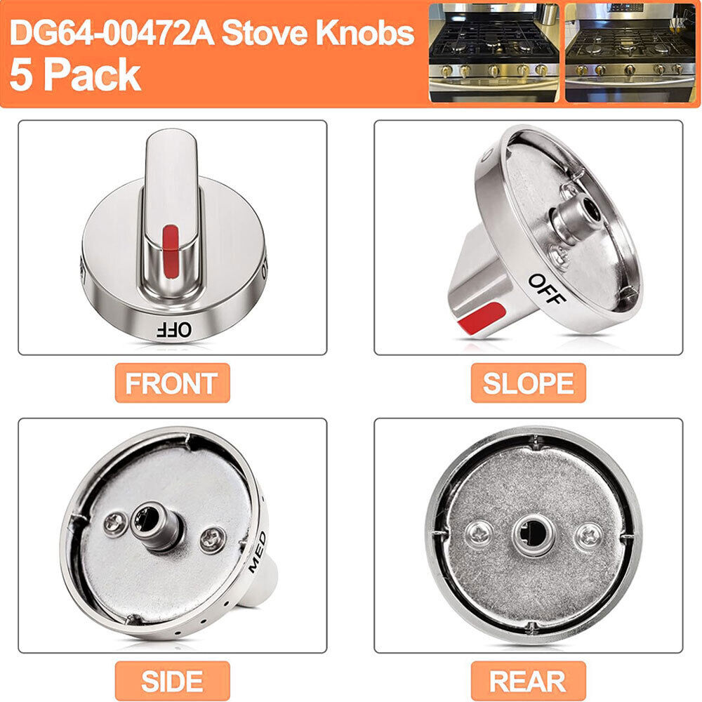 About this item [IDEAL REPLACEMENT]: Want 5 new DG64-00472A Stove Knobs that match the original, for far less than going back to the dealership? This stove knob replacement was specifically designed to look and function the same as the original burner knob dial on Samsung Stove Knobs. While this is NOT a genuine Samsung range knob, it is a direct replacement and it will appear, fit and work like the factory part. [COMPATIBLE MODELS]: Compatible with Samsung range / oven / gas / stove knob, fits for FX510BGS / XAA-00, FX510BGS / XAA-01, FX510BGS / XAA-02, FX710BGS / XAA-00, FX710BGS / XAA-01, FX710BGS / XAA-02, FX710BGS / XAA-03, FX710BGS / XAC-00, NX58F5300SS/AA-00, NX58F5300SS/AA-0000, NX58F5300SS/AA-0001, NX58F5300SS/AA-01, NX58F5500SS/AA-00, NX58F5500SS/AA-01. [REPLACES PART NUMBER]: DG64-00472A, DG64-00472B, DG64-00347A, DG64-00347B, DG64-00473A, DG64-00473B, 3447604, AH4241101, AP5949480, PS10058981, AP5325363, AP5949297, EAP4241101, PS4241101, PS9865173, PT15217047, EAP10058981, PD00008153, PS9865173, PT15217047, EAP4241101, AH4241101. (WARM TIPS: If your Samsung range knobs are black, you will need DG64-00473B,DG64-00472C, instead and this knob won't match your color). [DIRECT FIT]: Direct replacement for a proper fit and easy installation, quality materials used, meets or exceeds OEM standards, 100% tested before shipping. Ensure It is more suitable for the dial of your Samsung oven knobs through the new production process. [BUY WITH CONFIDENCE]: Order oven knob replacement from KONDUONE, we offer a 3 MONTHS WARRANTY, true worry-free shopping experience. If the stove knobs ever fail on your Samsung Range Oven simply contact us for a replacement.