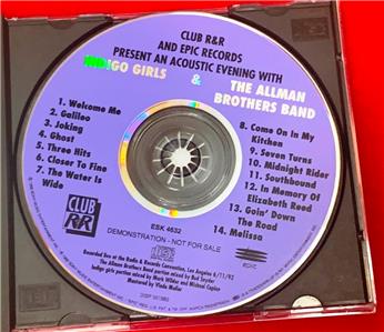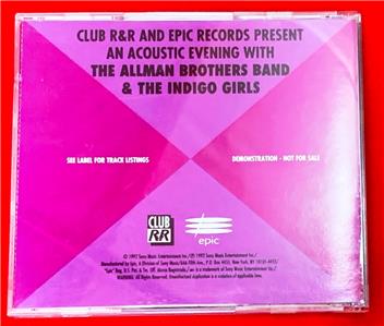 US promotional-only 14-track live CD event, recorded at the Radio & Records Convention in Los Angeles on June 11, 1992, including seven live tracks each from the Indigo Girls and The Allman Brothers Band.