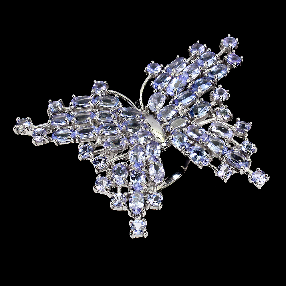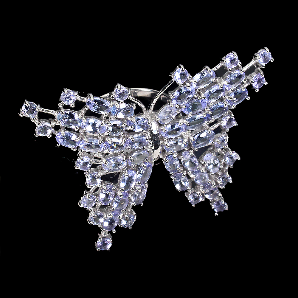 Unheated Oval Blue Tanzanite 5x3mm 925 Sterling Silver Butterfly Ring Size 9