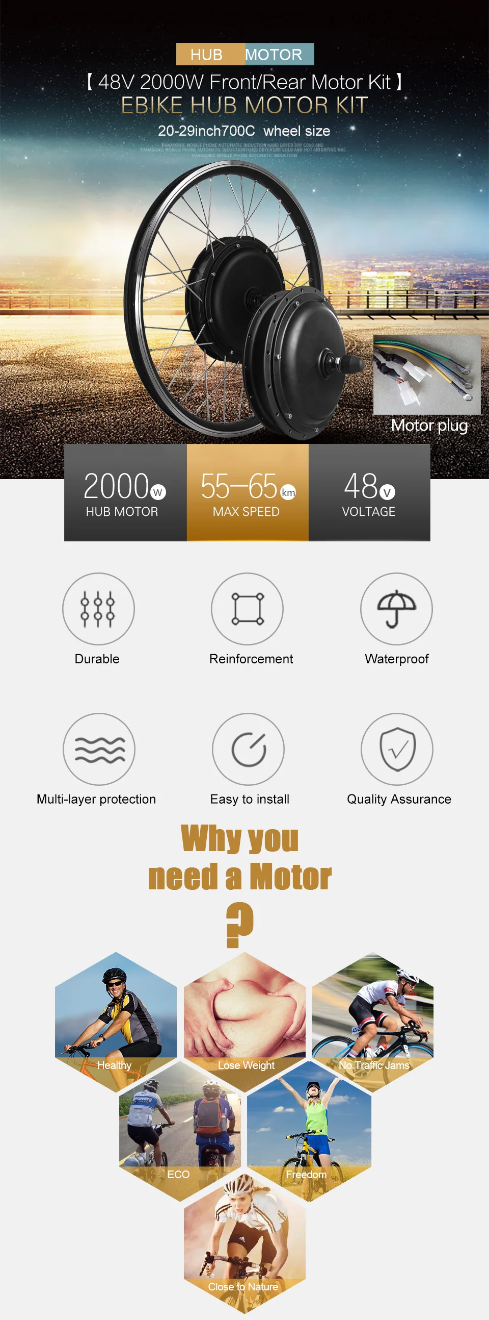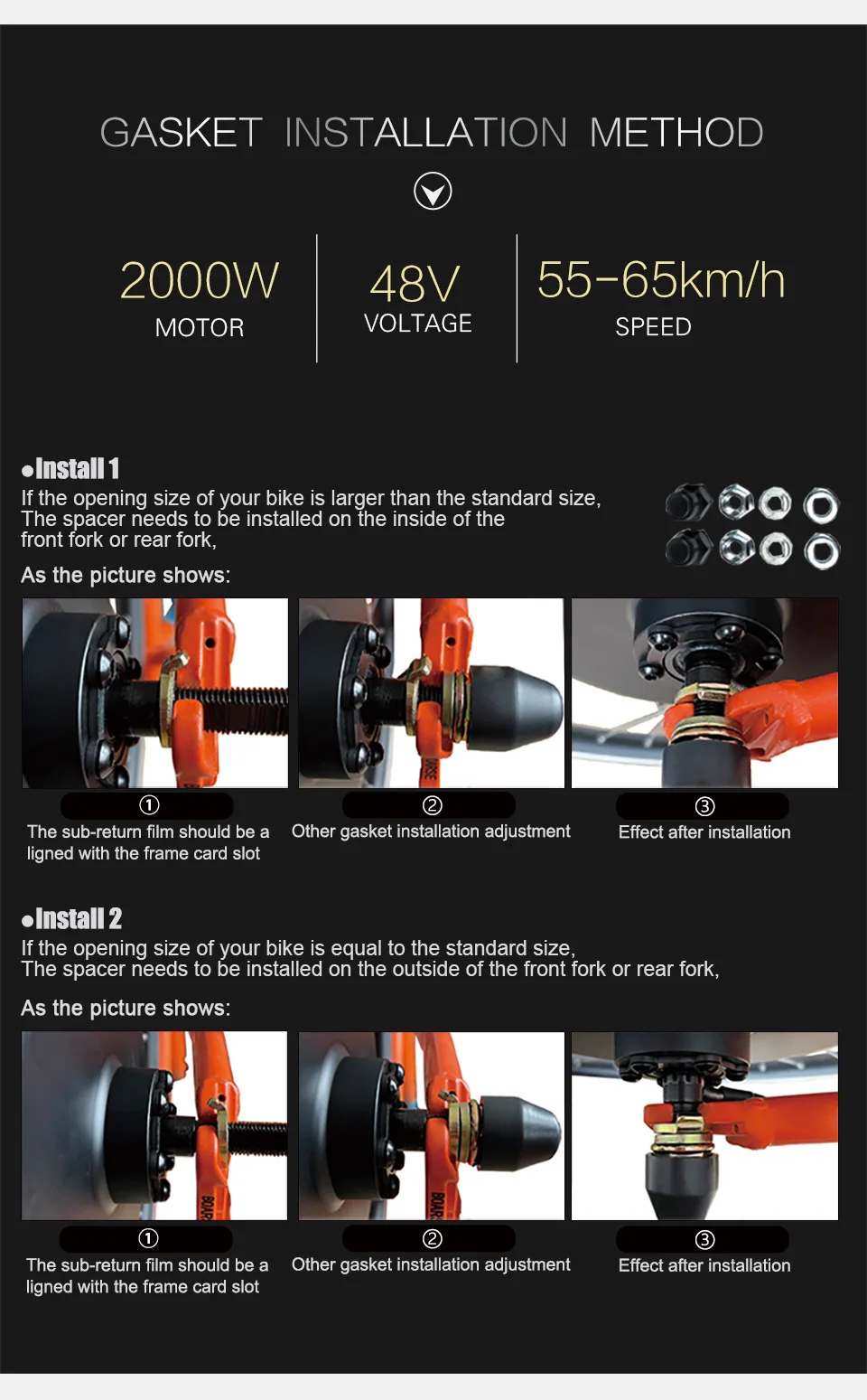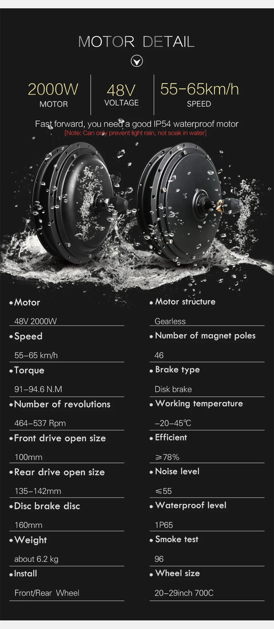 48V 2000W Front/Rear Hub Motor