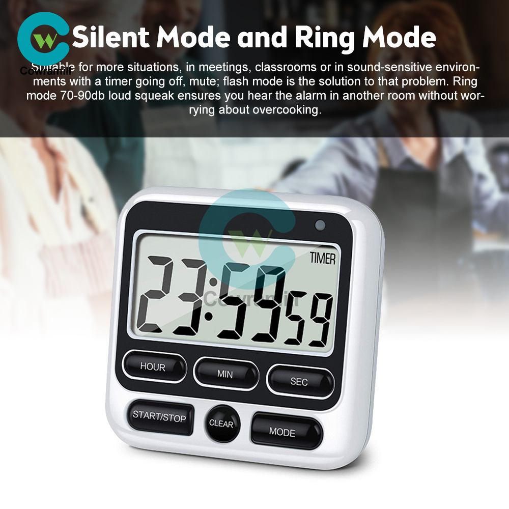 1. Silent Mode and Ring Mode: For more situations, ring the timer, silent in meetings, classrooms or sound sensitive environments; flash mode is the solution to that problem. Ring mode 70-90db loud squeak ensures you hear the alarm in another room without worrying about overcooking.