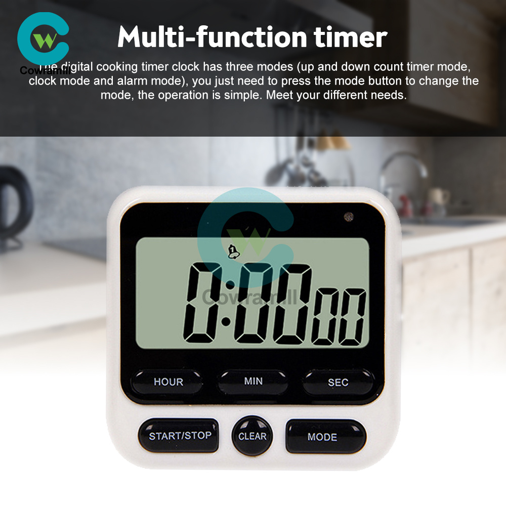 2. Multi-function timer: The digital cooking timer clock has three modes (up and down counting timer mode, clock mode and alarm mode), you just need to press the mode button to change the mode, the operation is simple. Meet your different needs.