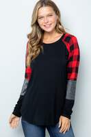 Unleash the cozy cabin charm with our Red Buffalo Plaid Silver Contrast Long Sleeve Top. This piece beautifully blends the rustic appeal of red buffalo plaid with chic silver accents, creating a festive and fashionable statement. Crafted with care in the USA, this top features a flattering crew neck and a stylish scoop hem, offering both comfort and a touch of elegance. Super stretchy material ensures a cozy fit, perfect for enjoying those cool, casual days or festive evenings by the fire.