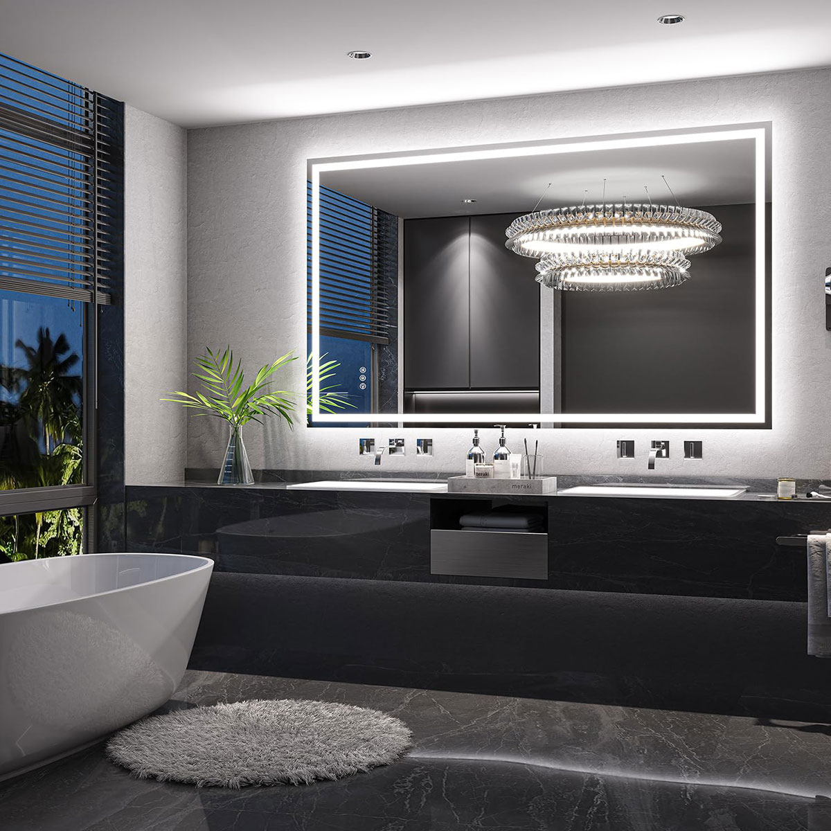 【Double Lighting Bathroom Mirror】Brightify LED bathroom mirror is designed with dual strip lights,incorporating both front lighting and back lighting. It emits front lighting and side ambient lighting simultaneously, providing a brighter and clearer reflection. The LED mirror is bright enough for makeup application, skincare routine, shaving, and dressing up. Each light strip features 192 LED per meter and has a lifespan of up to 50,000 hours.