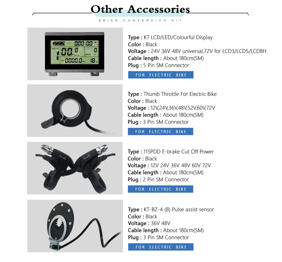 ■ PAS, Throttle, and E-brake in the kit are optional. If you need to replace it, please see the link to make up the difference at the bottom of the details page, or please contact us.