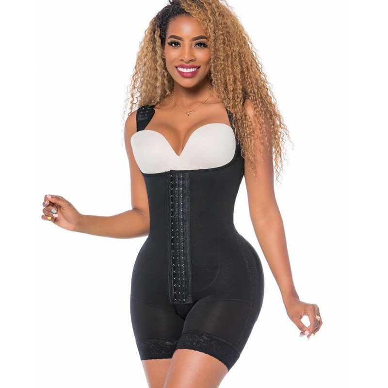 1.Scientific Design: Hooks and Zipper, Thigh Length, Open Crotch, Three-layered Design, Wide ,Adjustable and Removable straps, Push Up Breast Design. Open crotch design makes it convenient to use the bathroom; Mid thigh length help slim legs; Open-bust design allows you to wear your own bra.Removable straps can be used as bodysuit or high waist shaper panties.